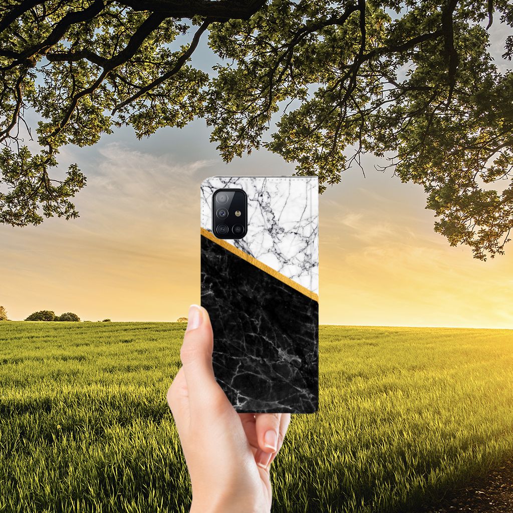 Dit design hoesje met zwartwit marmer is zeer geschikt voor jouw kostbare telefoon. Vanwege zijn prachtige lichtval en vastheid is marmer zeer gewild als bouwmateriaal. Op jouw smartphone kun je lange tijd bouwen als jij kiest voor deze hele mooie Samsung Galaxy A71 Standcase. Naast het zwart-witte marmer zijn er de diverse marmersoorten in een ruim kleurenpallet te krijgen. Deze stand case met marmer in zwart-wit wordt bedrukt op alle zijden. De case beschikt over een vakje voor een pasje en toebehoren en een magnetische sluiting aan de binnenzijde. Verder heeft de case in zwart wit marmer een houder van TPU. Wij hebben onze designer veel vrijheid gegeven met het ontwerpen dit mooie hoesje. Het resultaat zie je terug in deze stand case met zwartwit marmer, dat de ideale bescherming is voor jouw smartphone.