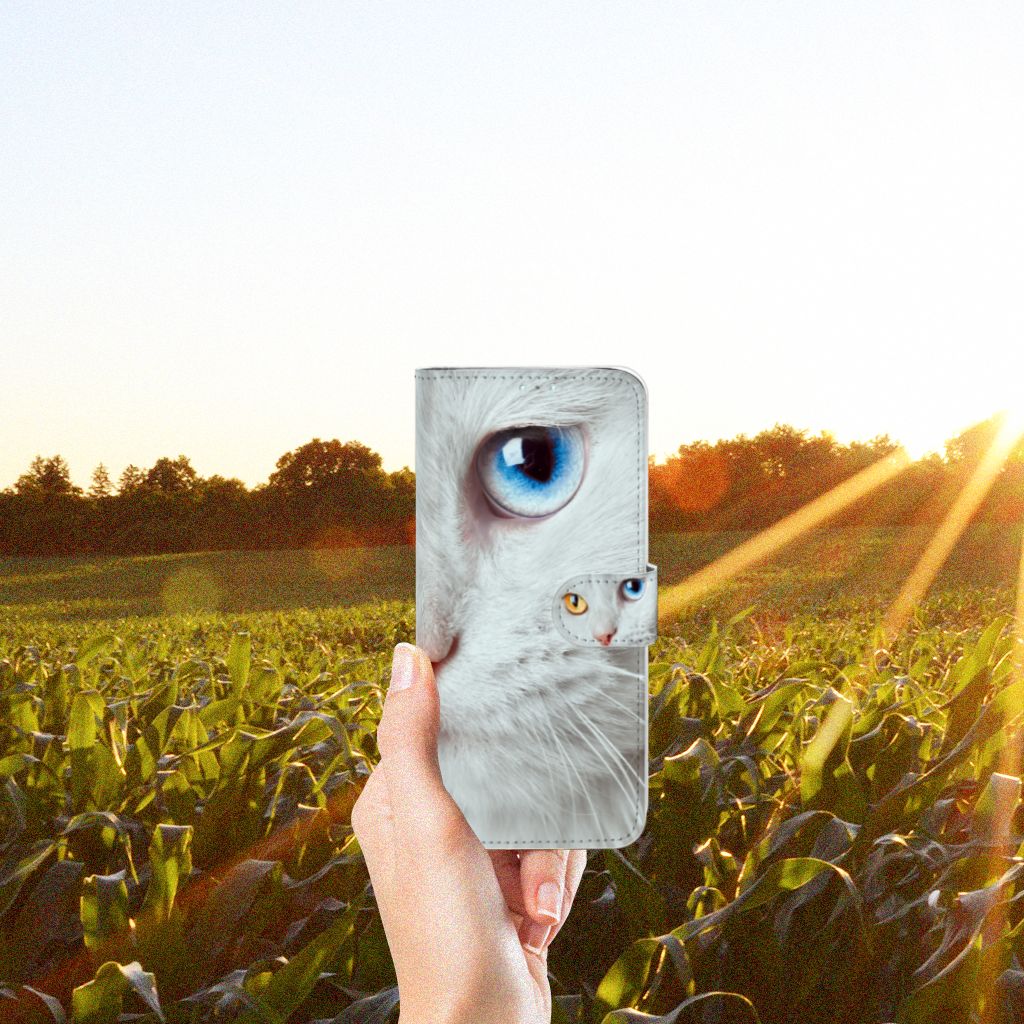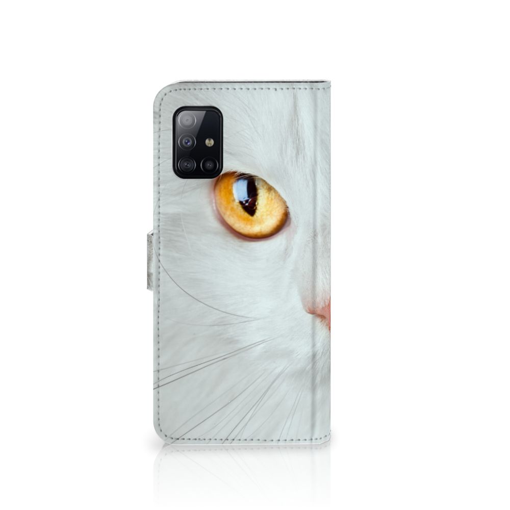Samsung Galaxy A71 Telefoonhoesje met magnetisch lipje als sluiting Witte Kat