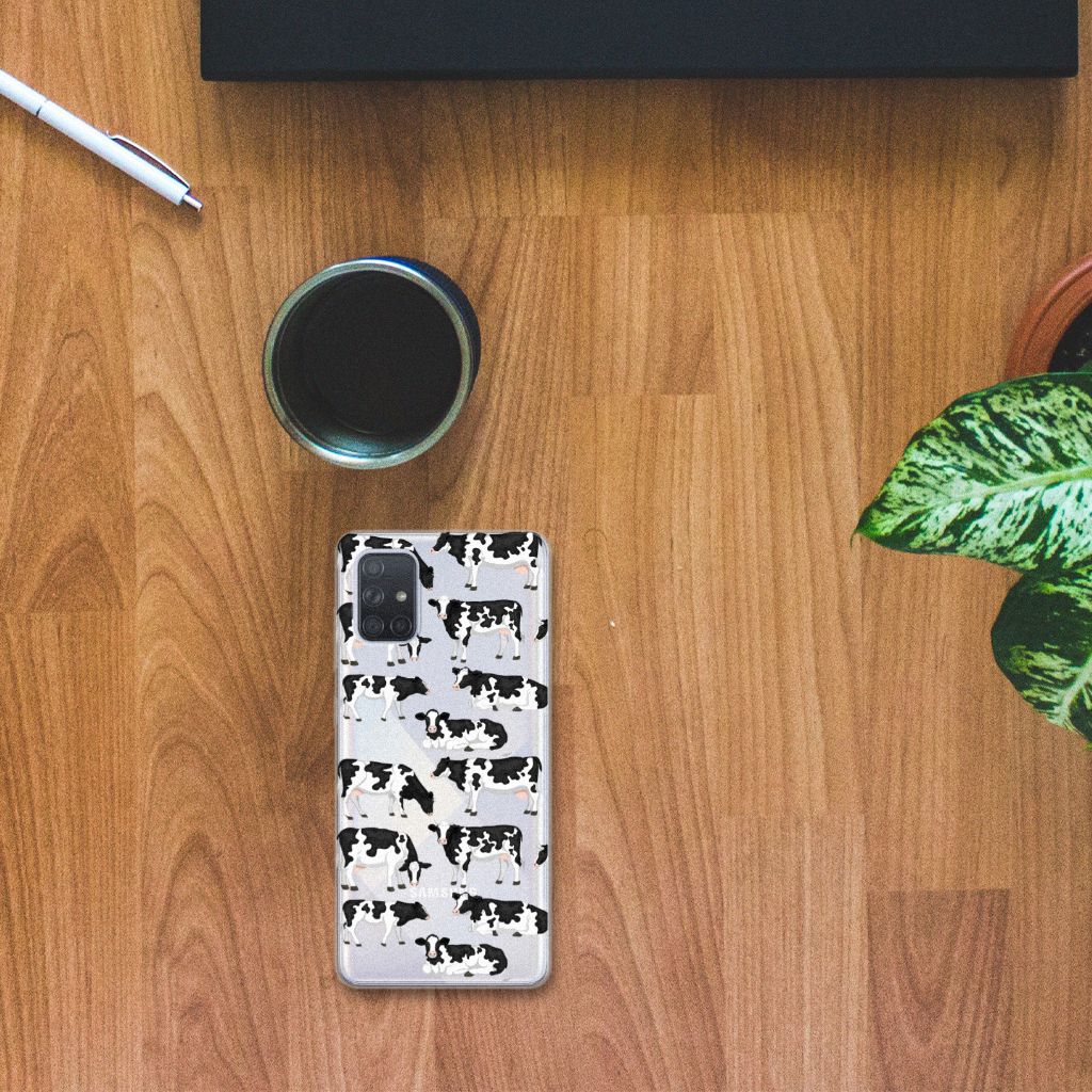 Een koe dient net zo goed verzorgd te worden als jouw smartphone. Waar je koeien eigenlijk vooral buiten moet laten grazen omwille van hun gezondheid, kun je het best je smartphone altijd in combinatie met een hoesje met je meedragen. Dit Samsung Galaxy A71 TPU Hoesje met Koetjes ziet er geweldig uit en is voorzien van opstaande raden. Dit betekent extra bescherming voor het touchscreen, mocht de telefoon uit je handen vallen. Een TPU case met koeien beschermt jouw smartphone vooral aan de zijkanten en achterkant. De randen worden niet bedrukt met koeien en blijven transparant. Jouw smartphone wordt zeer duurzaam met dit tpu hoesje. Het TPU is zeer flexibel en de case past altijd in je broekzak. Je scherm krijgt extra bescherming met een screenprotector.