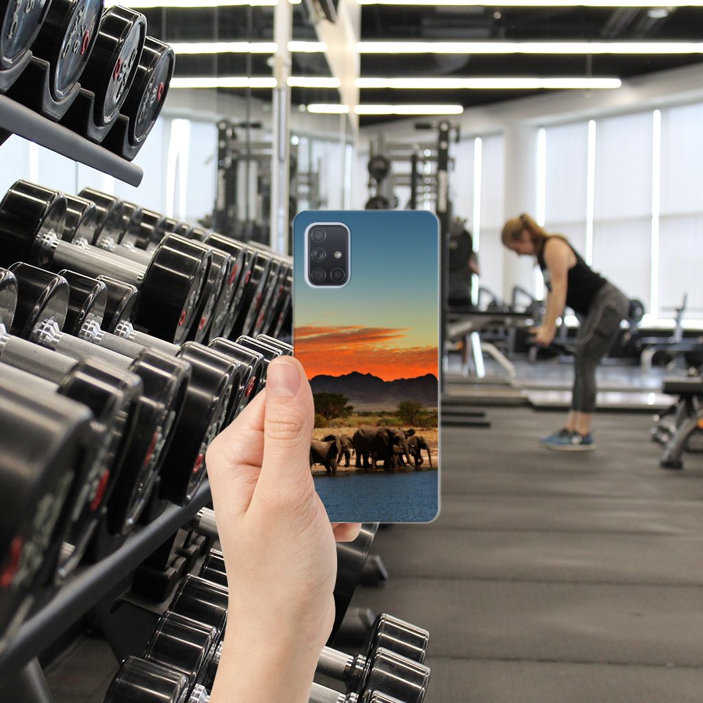 Dit hoesje is zo sterk als een olifant. Dat is goed nieuws, want jouw telefoon heeft een zeer goede bescherming nodig. Dat krijg je met dit design hoesje met print van Olifanten. De Afrikaanse olifant, het allergrootste landdier ter wereld, heeft waarschijnlijk het meest te lijden gehad van stroperij om het ivoor. Deze dieren verdienen dus een goede bescherming, net als jouw smartphone. Met een Samsung Galaxy A71 TPU Hoesje met olifant erop krijg je dit zeker voor elkaar. De tpu case beschermt vooral de achterkant en zijkanten van je telefoon en is gemaakt van onbreekbaar materiaal. De sterke olifant komt zeer goed tot zijn recht op deze case, die zeer flexibel is. Alleen de bovenzijde van de case wordt bedrukt met olifanten, de zijkanten blijven transparant.