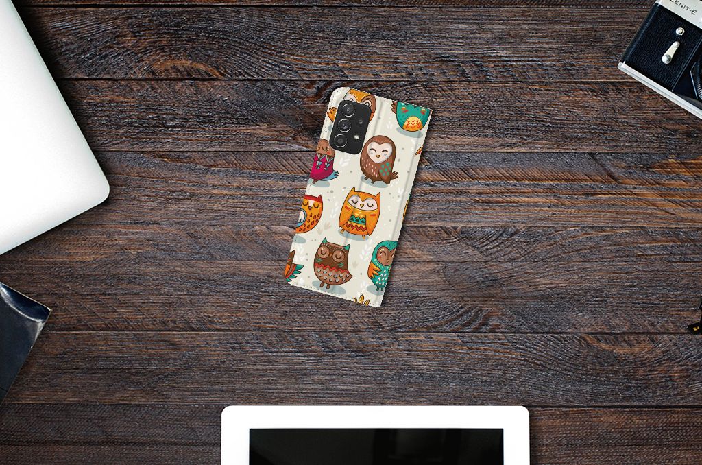 Deze Samsung Galaxy A72 (5G/4G) Hoesje maken met Vrolijke Uilen is echt iets voor de nachtbrakers onder ons. De uil is zoals je weet bij uitstek een vogel die in de nachtelijke uren actief is. Ben jij ook iemand die s ’nachts tot leven komt, dan is deze stand case met uilen in felle kleuren echt iets voor jou. Als je tot in de late uurtjes op stap bent, komt het goed uit dat jouw smartphone aan alle kanten goed is beschermd met deze stand case met uilen. De case met uilen heeft een magnetische sluiting aan de binnenkant, waardoor de hoes niet openklapt als die uit je handen valt. Jouw creditcard of pinpas heb je als het goed is veilig opgeborgen in het vakje aan de binnenzijde. De houder aan de binnenzijde van de case met print van uilen is van het flexibele TPU. De wat ruigere types hebben veel baat bij deze stand case met uilen in felle kleuren.