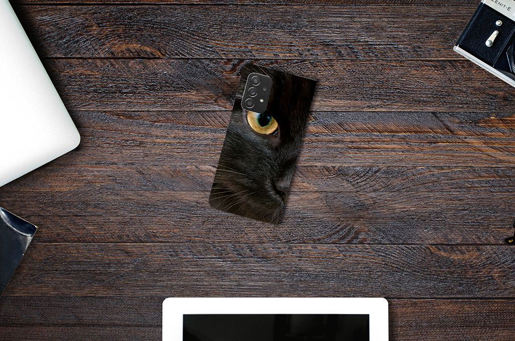 warte katten zijn heel speciaal, vandaar we een exemplaar op een design hoesje hebben gezet. Een zwarte kat schijnt bijvoorbeeld veel beter te kunnen horen dan witte katten. Deze zwarte kat staat op zeer prominente wijze op een stand case. Een Samsung Galaxy A72 (5G/4G) Hoesje maken met zwarte kat beschermt jouw smartphone aan alle zijden en wordt ook volledig bedrukt. De stand case met zwarte kat ziet er geweldig uit en is voorzien van verschillende uitsparingen en een speciale standaard. Alle zijden van de case zijn bedrukt. Dit design hoesje is van TPU aan de binnenzijde en zeer flexibel. Verder heeft de case een houder voor een pasje.