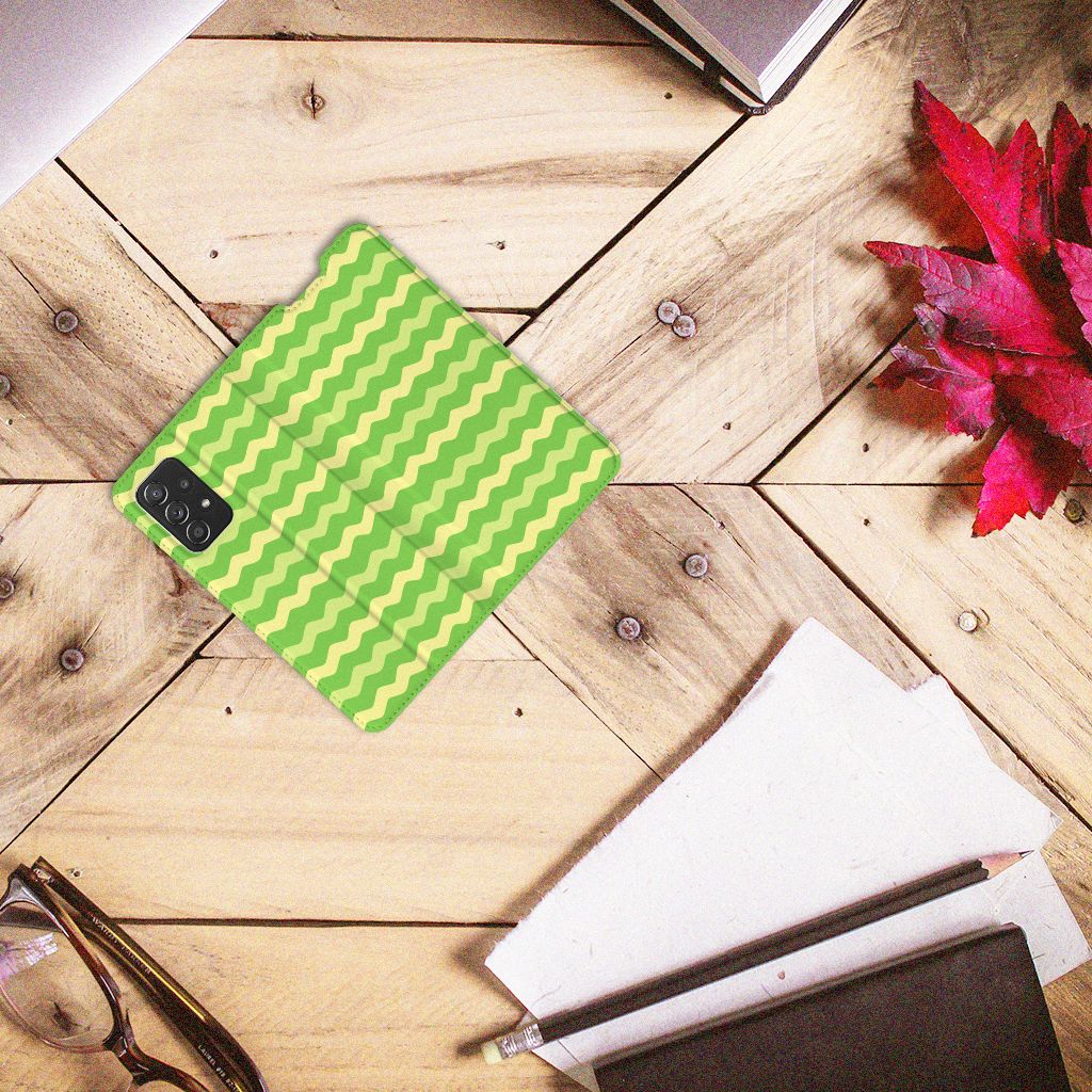 Dit groene design hoesje met groene golven is speciaal ontworpen voor jouw telefoon. We hebben een vleugje geel toegevoegd, zodat er sprake is van variatie. Dit Waves Green hoesje ziet er flitsend uit. Dat kan ook niet anders, als je weet dat we veel energie steken in het bedenken van originele designs. Een heel strak Samsung Galaxy A72 (5G/4G) Hoesje met Magneet, met zeer veel opties. Past dit groene design hoesje met golven goed bij jou? Bestel het dan vandaag nog, tegen zeer lage kosten. Het design staat op een stand case. Deze case met groene golven beschermt jouw telefoon aan alle kanten en beschikt over een 1 opbergvakje en een speciale standaard. Het hoesje wordt afgesloten met een magneet aan de binnenzijde. De houder aan de binnenzijde is van TPU. Alle zijden van de stand case worden bedrukt.