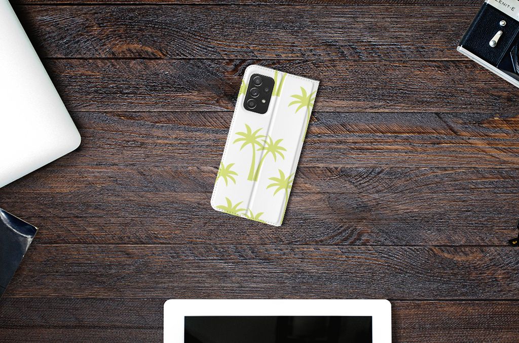 Je krijgt direct een vakantiegevoel als je kiest voor een Samsung Galaxy A72 (5G/4G) Smart Cover met opdruk van lichtgroene Palmtrees. Sommige mensen hebben ook een palmboom in hun tuin staan, wij kunnen er meerdere op een stand case zetten. Jouw smartphone is op en top beschermd met een stand case met lichtgroene palmbomen tegen een witgrijze achtergrond en ziet er schitterend uit. Het is heel verstandig je telefoon te beschermen met dit stand hoesje met lichtgroene palmbomen tegen een witgrijze achtergrond. Het stand hoesje met palmbomen heeft een vakje aan de binnenzijde en een magneet aan de binnenkant. Dit stand hoesje met lichtgroene palmbomen tegen een witgrijze achtergrond beschermt jouw telefoon aan alle zijden en heeft een standaard. De houder van TPU aan de binnenzijde is zeer flexibel.