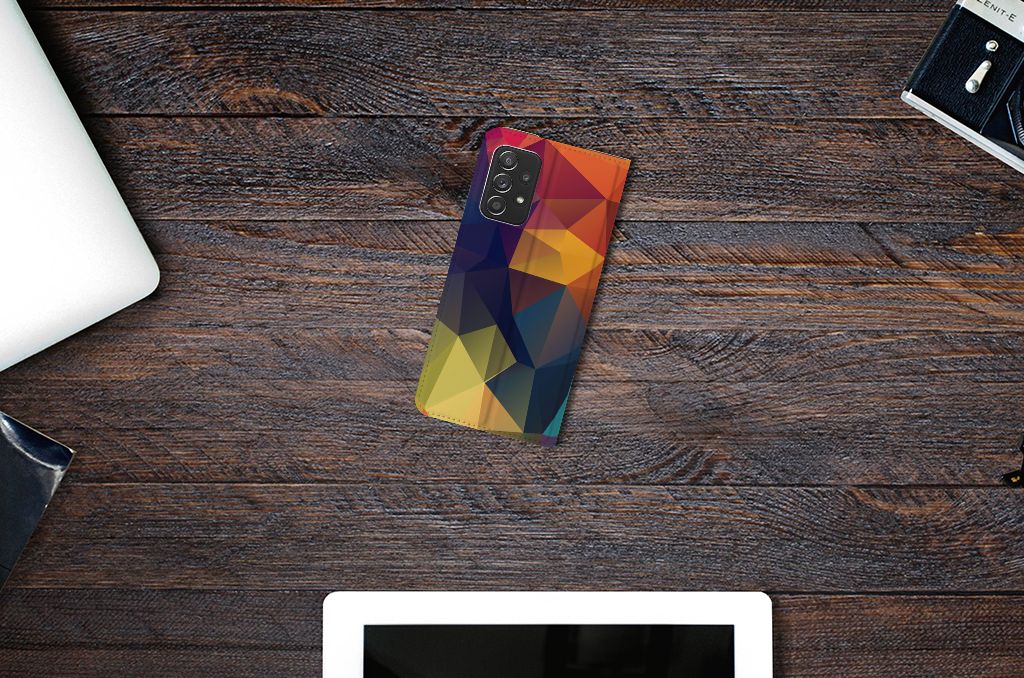 Veelkleurige driehoeken die samen eindeloze asymmetrische patronen lijken te vormen. Het is het abstracte schouwspel dat op dit fraaie hoesje voor je Samsung Galaxy A72 (5G/4G) direct de aandacht trekt noemen we voor het gemak trekt noemen we voor het gemak Polygon Color. De een ziet er een berglandschap in, de ander piramides. Wat zie jij erin? Zeker is in elk geval dat de aanblik van dit fascinerende ontwerp je niet snel gaat vervelen. Het kleurige spel van lijnen en vlakken blijft eindeloos boeien en geeft jouw Stand Case een hippe en kunstzinnige uitstraling. De kracht die het lijnenspel uitstraalt, komt ook terug in het hoesje zelf. De solide hoes van PU-leer beschikt ook over een 1 pashouder en een speciale standaard. Het hoesje wordt afgesloten met een magneet aan de binnenzijde. De houder aan de binnenzijde is van TPU. Alle zijden worden bedrukt.