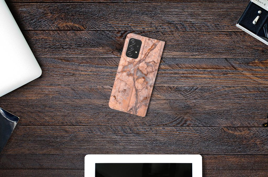 Dit design hoesje met Marmer Oranje is zeer geschikt voor jouw kostbare telefoon. Vanwege zijn prachtige lichtval en vastheid is marmer een zeer gewild bouwmateriaal. Wij kunnen inmiddels concluderen dat dit hoesje met oranje marmer ook zeer gewild is. Beloon jezelf en je telefoon met dit hele mooie Samsung Galaxy A72 (5G/4G) Standcase. Naast het oranje marmer zijn er de diverse marmersoorten in een ruim kleurenpallet te krijgen. Deze stand case met marmer in oranje wordt bedrukt op alle zijden. De case beschikt over een vakje voor een pasje en toebehoren en een magnetische sluiting aan de binnenzijde. Verder heeft de case in oranje marmer een houder van TPU. Wij hebben onze designer veel vrijheid gegeven met het ontwerpen dit mooie hoesje. Het resultaat zie je terug in deze stand case met oranje marmer, dat de ideale bescherming is voor jouw smartphone. Des te mooi dat wij voor variatie hebben gekozen door een hoesje met oranje marmer aan de bieden.