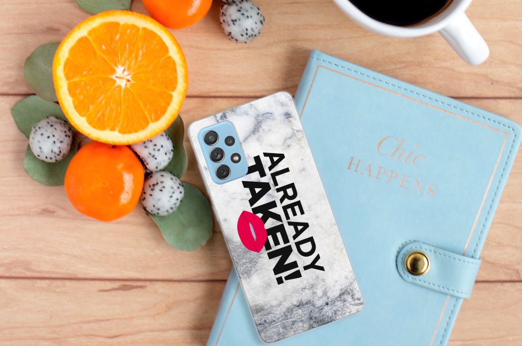 Stel dat je opdringende vrouwen of mannen van je af wil schudden op het moment dat je aan het feesten bent, omdat je al een partner hebt. Dan kun je dat met dit hoesje uitstekend duidelijk maken. Je Samsung Galaxy A72 neem je waarschijnlijk vaak ter hand, dus dan zal de boodschap als je over dit hoesje beschikt zeker weten overkomen. Ook in het openbaar vervoer zal dit hoesje ervoor zorgen dat je minder snel versierd wordt door het andere geslacht. Als je vrijgezel bent en op zoek naar gezelschap, dan kun je beter kiezen voor een ander hoesje uit ons ruime en gevarieerde assortiment. Het design Already Taken White staat op een Siliconen hoesje met naam. Dit hoesje wordt alleen aan de bovenkant bedrukt en is zeer flexibel. De randen van het hoesje blijven transparant.