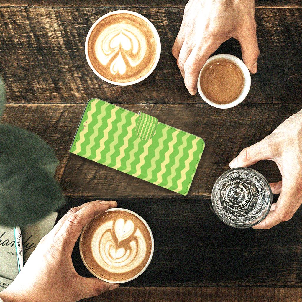 Dit groene design hoesje met groene golven is speciaal ontworpen voor jouw telefoon. We hebben een vleugje geel toegevoegd, zodat er sprake is van variatie. Dit Waves Green hoesje ziet er flitsend uit. Dat kan ook niet anders, als je weet dat we veel energie steken in het bedenken van originele designs. Een heel strak Samsung Galaxy A72 Telefoon Hoesje, met zeer veel opties. Past dit groene design hoesje met golven goed bij jou? Bestel het dan vandaag nog, tegen zeer lage kosten. Het design staat op een boekhoesje. Dit smartphonehoesje beschermt jouw telefoon aan alle zijden en beschikt over verschillende opbergvakjes voor pasjes en briefgeld. De case sluit perfect af met het lipje aan de buitenkant. De houder aan de binnenzijde is van TPU. Alle zijden van het groene hoesje met golven worden bedrukt, inclusief het lipje.