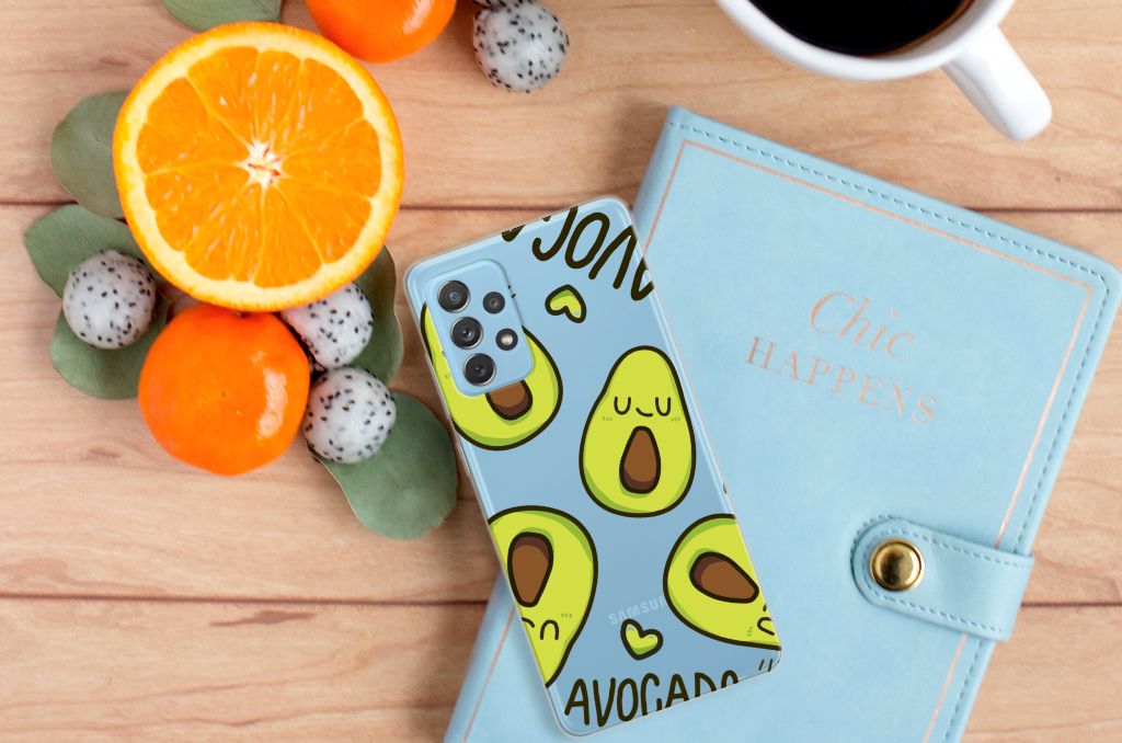 Avocado’s zijn niet alleen heel erg goed voor je, ze zijn ook super leuk op je telefoonhoesje. Dit unieke design vol schattige avocado’s zal jou en iedereen om je heen meteen opvrolijken. Nog een voordeel van dit design: deze avocado’s bederven nooit! Dit leuke Avocado Singing-ontwerp staat op een Telefoonhoesje met Naam voor de Samsung Galaxy A72. Met deze vrolijke groene vruchten op je hoesje val jij zeker op. TPU is flexibel en onbreekbaar. Zo is je telefoon aan de achterkant en de randen heel goed beschermd. De case is aan de bovenkant bedrukt, de randen blijven transparant. Het TPU-hoesje is perfect te combineren met een screenprotector, zo zijn je telefoon en je beeldscherm perfect beschermd.