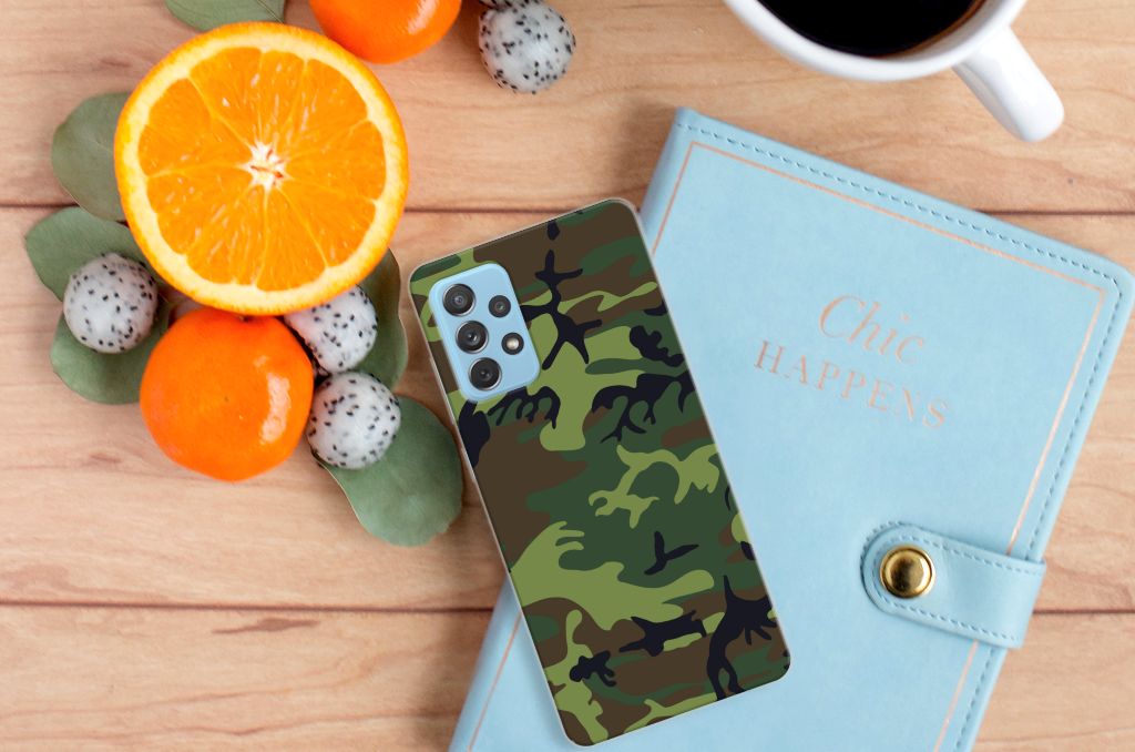 Voel je jezelf verbonden met het leger, dan zal deze Samsung Galaxy A72 TPU bumper je zeker bevallen. Het tpu hoesje beschikt namelijk over donkere camouflage kleuren. Deze worden vaak gebruikt door mensen die zich graag willen mengen in hun omgeving. Dit Army Dark hoesje is er dus voornamelijk in kleuren die in de natuur voorkomen, zodat je één wordt met je achtergrond. Beschermt de krijgsmacht volk en vaderland, dit hoesje in donkere camouflage kleuren zal jouw telefoon onder alle omstandigheden schadevrij houden. Met een hoesje in dit soort kleuren zal je niet zo snel opvallen. Het design staat op een TPU case. Dit hoesje wordt alleen aan de bovenkant bedrukt met donkere camouflage kleuren en is zeer flexibel. De randen van het hoesje blijven transparant.