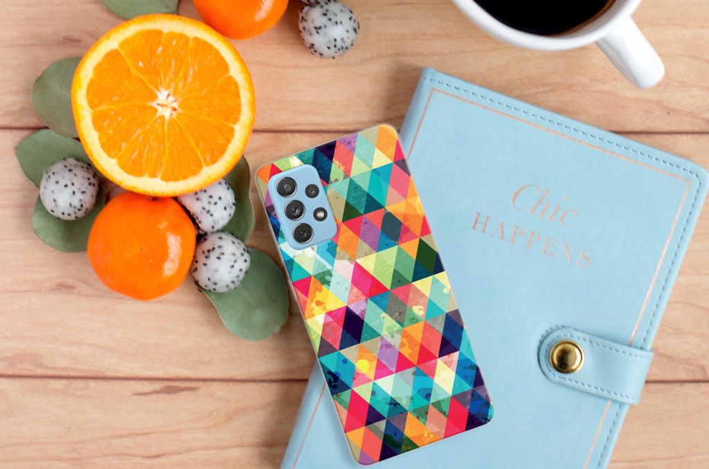 Van dit geruite design hoesje moet je een beetje houden. Maar als je het eenmaal in bezit hebt, ben je waarschijnlijk binnen no time verkocht. Het design heeft ruitjes in alle kleuren van de regenboog en door de grijze achtergrond kan het hoesje enigszins druk overkomen. Maar tegelijkertijd is dit de kracht van het hoesje. Met dit design hoesje Geruit zal je namelijk heel erg opvallen. Dit is voor veel vooral jonge smartphone gebruikers een belangrijk voordeel. Deze geruite print staat op een Samsung Galaxy A72 TPU bumper. Dit zeer flexibele smartphone hoesje heeft alle nodige uitsparingen en past altijd in je broekzak. De case is aan de bovenkant bedrukt, de randen blijven transparant.