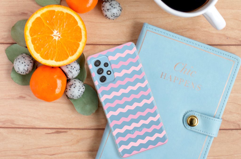 Dit design hoesje met Waves Roze afdruk is speciaal op maat gemaakt voor jouw telefoon. We hebben verschillende kleurstellingen gebruikt in het design, zodat de case er spannend en leuk uitziet. Dit licht roze hoesje met verschillende soorten golven ziet er opwindend uit. Het Samsung Galaxy A72 TPU bumper wordt in ons eigen magazijn bedrukt, vandaar dat we de kosten zeer laag kunnen houden. Wij kunnen het duurzame hoesje met licht roze golven zeer snel leveren. Heb jij altijd al een design hoesje met verschillende soorten licht roze willen hebben? Deze TPU case met licht roze golven wordt alleen aan de bovenkant bedrukt en is zeer flexibel. De randen van het hoesje met licht roze golven blijven transparant en worden niet bedrukt. Met dit licht roze hoesje past jouw telefoon altijd in je broekzak.