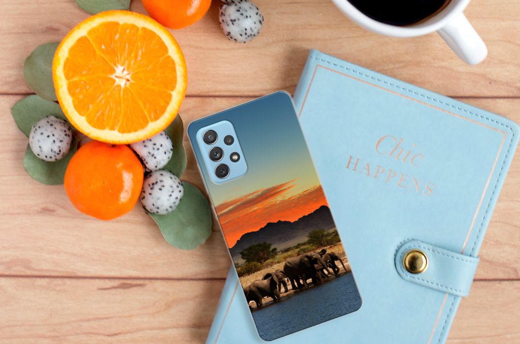 Dit hoesje is zo sterk als een olifant. Dat is goed nieuws, want jouw telefoon heeft een zeer goede bescherming nodig. Dat krijg je met dit design hoesje met print van Olifanten. De Afrikaanse olifant, het allergrootste landdier ter wereld, heeft waarschijnlijk het meest te lijden gehad van stroperij om het ivoor. Deze dieren verdienen dus een goede bescherming, net als jouw smartphone. Met een Samsung Galaxy A72 TPU Hoesje met olifant erop krijg je dit zeker voor elkaar. De tpu case beschermt vooral de achterkant en zijkanten van je telefoon en is gemaakt van onbreekbaar materiaal. De sterke olifant komt zeer goed tot zijn recht op deze case, die zeer flexibel is. Alleen de bovenzijde van de case wordt bedrukt met olifanten, de zijkanten blijven transparant.
