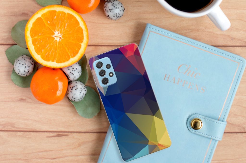Ben je een liefhebber van abstracte hoesjes? Dan zit je met dit fraaie telefoonhoesje met Polygon Dark design voor je Samsung Galaxy A72 zeker goed. Het ontwerp springt in het oog door de naadloos op elkaar aansluitende veelhoeken – beter bekend als polygonen. Door hun asymmetrische karakter krijgt het TPU Hoesje een bijzondere uitstraling en wordt je blik ernaartoe gezogen als door het beste abstracte schilderij. Het trendy uiterlijk en de warme kleuren zorgen ervoor dat het hoesje aansluit op vrijwel elke smaak en situatie. Het design staat op een TPU case. Dit hoesje wordt alleen aan de bovenkant bedrukt en is zeer flexibel. De randen van het hoesje blijven transparant.