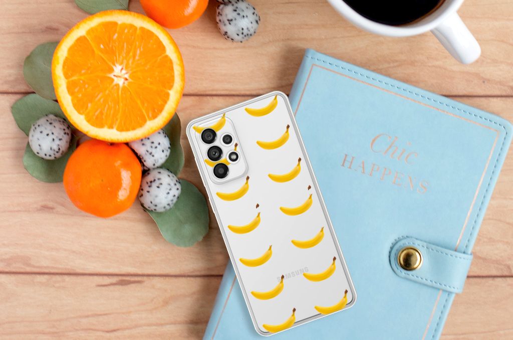 Bananen zitten tjokvol natuurlijke energie-oppeppers. Fructose, glucose, vezels… om er maar eens een paar te noemen. Een banaan is zo’n energiebom, dat wanneer je er twee eet je genoeg energie verzameld hebt om anderhalf uur vol te sporten. Deze vrucht geeft power, daarom misstaan ze ook niet op deze leuke Samsung Galaxy A73 5G Siliconen Case. Met het aantal bananen dat op dit hoesje staat heb je energie voor een hele maanden of misschien wel een paar maanden. Jouw smartphone blijft zijn kracht behouden als je kiest voor dit design hoesje met bananen. Het grijswit geblokte patroon op de achtergrond geeft nog wat extra’s aan de banaan. Altijd als een print van een banaan op je hoesje willen hebben? Dit is je kans. De bananen staan op een TPU case. Dit hoesje wordt alleen aan de bovenkant bedrukt en is zeer flexibel. Met het aantal bananen dat op dit hoesje staat heb je energie voor een hele maanden of misschien wel een paar maanden. De randen van het hoesje blijven transparant en worden niet bedrukt. Met dit hoesje past jouw telefoon altijd in je broekzak.