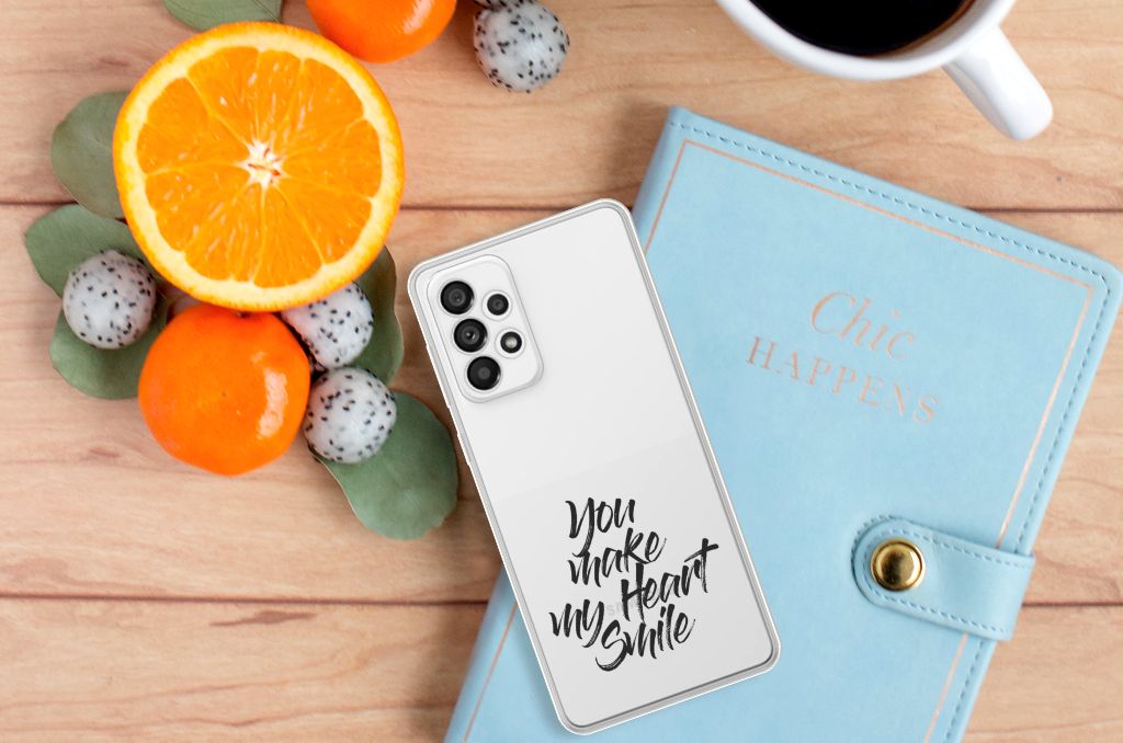 Ben je op zoek naar een uniek telefoonhoesje voor je Samsung Galaxy A73 5G? Dan ben je bij B2C Telecom aan het juiste adres! Speciaal voor jou hebben we dit prachtige Heart Smile design in onze collectie hoesjes opgenomen. Het design wordt bedrukt op een Siliconen hoesje met naam en is gemaakt van flexibel rubber. Het design wordt alleen aan de bovenkant van het hoesje bedrukt en de randen blijven transparant. Aan de zijkanten zijn uitsparingen gemaakt waardoor je met gemak alle knoppen en poorten kunt bedienen. Wij adviseren om dit hoesje in combinatie met een screenprotector te gebruiken voor een langere levensduur van je telefoon. Wil je dit design hoesje nog iets extra's geven? Voeg dan gratis je naam of een quote toe! Is dit design hoesje toch niet helemaal wat je zocht? Ontwerp dan zelf een hoesje in ons ontwerpprogramma.
