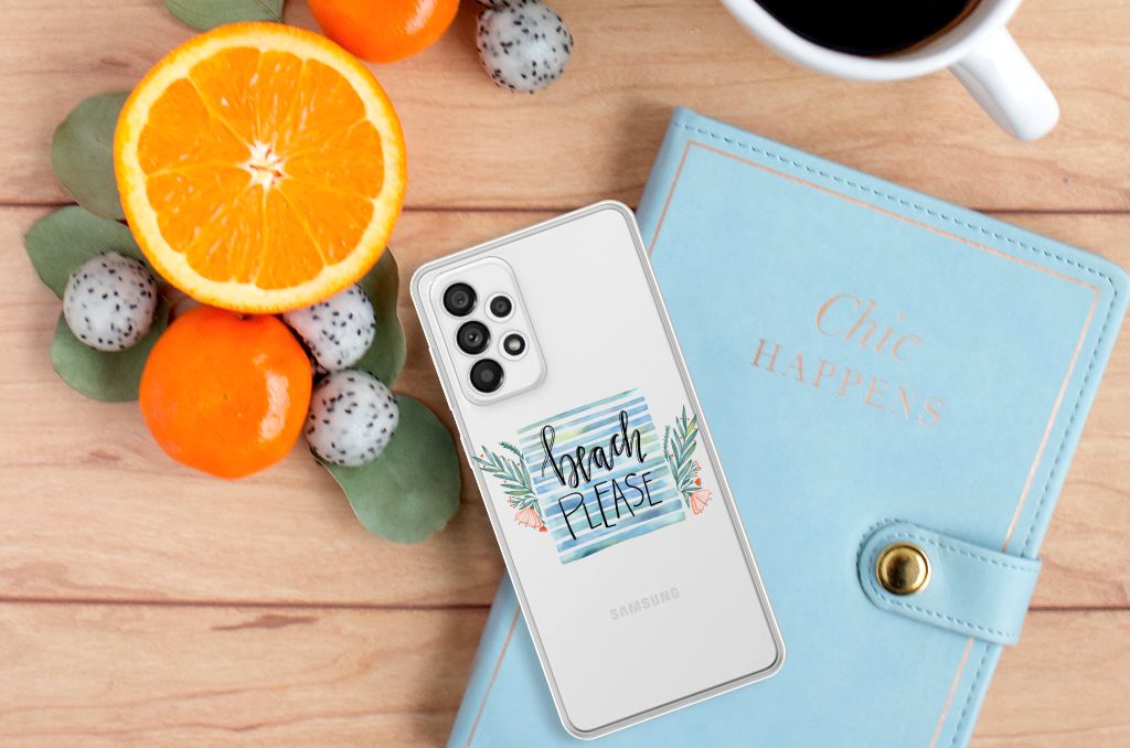 Dit design is perfect voor iedereen die geen genoeg kan krijgen van zon, zee en strand. Met dit Telefoonhoesje met Naam voor de Samsung Galaxy A73 5G draag je de zomer altijd een beetje bij je. Dankzij de tekst ‘Beach Please’ ziet iedereen dat je een echte zonaanbidder bent. Het boho beach-ontwerp is vrolijk dankzij de subtiele bloemen en de leuke kleurtjes. TPU is flexibel en heel erg sterk. Zo is je telefoon aan de achterkant en de randen heel goed beschermd. De case is aan de bovenkant bedrukt, de randen blijven transparant. Het TPU-hoesje is perfect te combineren met een screenprotector, zo zijn je telefoon en je beeldscherm altijd goed beschermd.