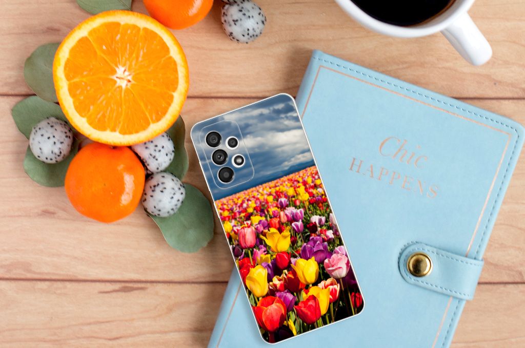 De tulp is een oer-Nederlandse bloem en heeft een lange geschiedenis. Deze Samsung Galaxy A73 5G TPU Case met Tulpen ziet er bijzonder kleurrijk uit. Dit fleurige smartphone hoesje geeft een bijzondere bescherming van jouw apparaat. Tulpen zijn ideaal voor een kleurrijk begin van het tuinseizoen. Iedereen wordt er vrolijk van om te zien hoe deze bloemen het voorjaar kleur geven en het begin van de warmere tijd van het jaar aankondigen. Dan kan het toch niet anders of jij wordt heel erg blij van deze tpu case met tulpen? Deze tpu case is zeer flexibel en past altijd in je broekzak. Het materiaal is zeer elastisch en onbreekbaar. De case wordt niet aan alle zijden bedrukt met tulpen. De randen blijven transparant. Je kunt ook zelf een tpu case maken met daarop jouw favoriete bloem.