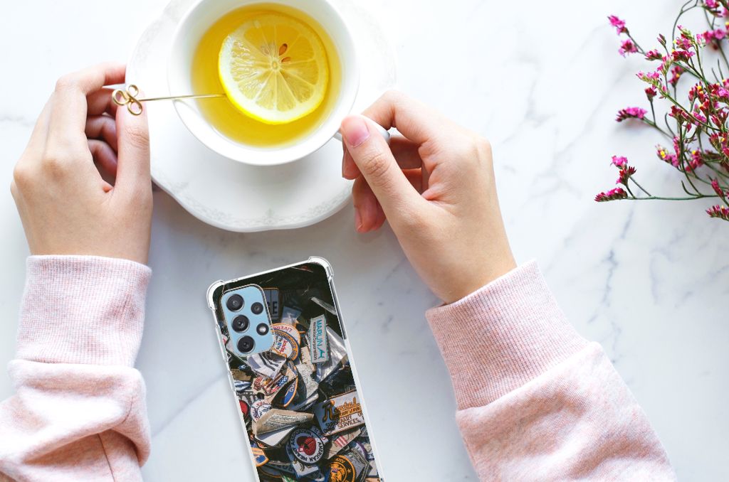 Ben je op zoek naar een uniek telefoonhoesje voor je Samsung Galaxy A73? Dan ben je bij B2C Telecom aan het juiste adres! Speciaal voor jou hebben we dit prachtige Badges design in onze collectie hoesjes opgenomen. Het design wordt bedrukt op een Anti-shock Hoesje met foto en is gemaakt van flexibel rubber. Het hoesje is perfect voor de actieve smartphonegebruiker door de opstaande randen/hoeken. Denk aan mensen die veel sporten, reizen of wandelen en net iets meer zekerheid willen als het op hun geliefde telefoon aankomt. Het design wordt alleen aan de bovenkant van het hoesje bedrukt en de randen blijven transparant. Aan de zijkanten zijn uitsparingen gemaakt waardoor je met gemak alle knoppen en poorten kunt bedienen. Wij adviseren om dit hoesje in combinatie met een screenprotector te gebruiken voor een langere levensduur van je telefoon. Wil je dit hoesje nog iets extra's geven? Voeg dan gratis je naam of een quote toe! Is dit design hoesje toch niet helemaal wat je zocht? Ontwerp dan zelf een hoesje in ons ontwerpprogramma.