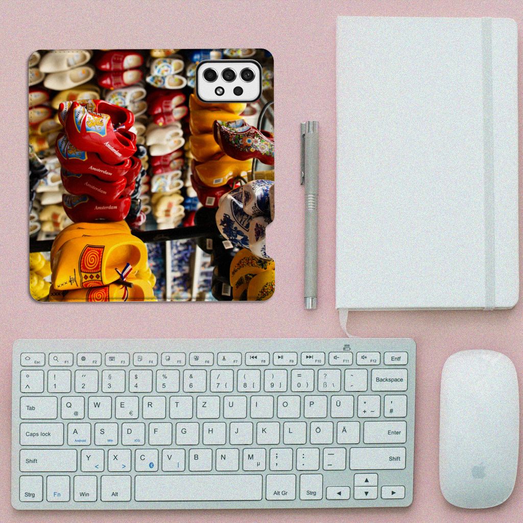 Een Samsung Galaxy A73 Book Cover met klompen is een schitterende versiering voor jouw smartphone. Traditioneel worden klompen in een gele kleur gemaakt, soms met eenvoudige versieringen die van plaats tot plaats verschillen. Deze mooie stand case met verschillende soorten klompen in verschillende kleuren is zo’n beetje de veiligste case die er bestaat. Het hoesje met klompen zorgt voor een volledige bescherming van je smartphone en wordt aan alle zijden bedrukt. De case heeft een magneet aan de binnenzijde, wat zorgt voor een perfecte sluiting. Verder is de houder aan de binnenzijde van TPU. Met een stand hoesje met klompen in verschillende kleuren op alle zijden blijft jouw gsm volledig in tact. Sta je liever zelf met je eigen mooie klompen op een hoesje? Ontwerp dan zelf een stand case met je eigen foto’s en teksten! Behalve klompen kun je zelfs je gehele boerderij op de stand case zetten.