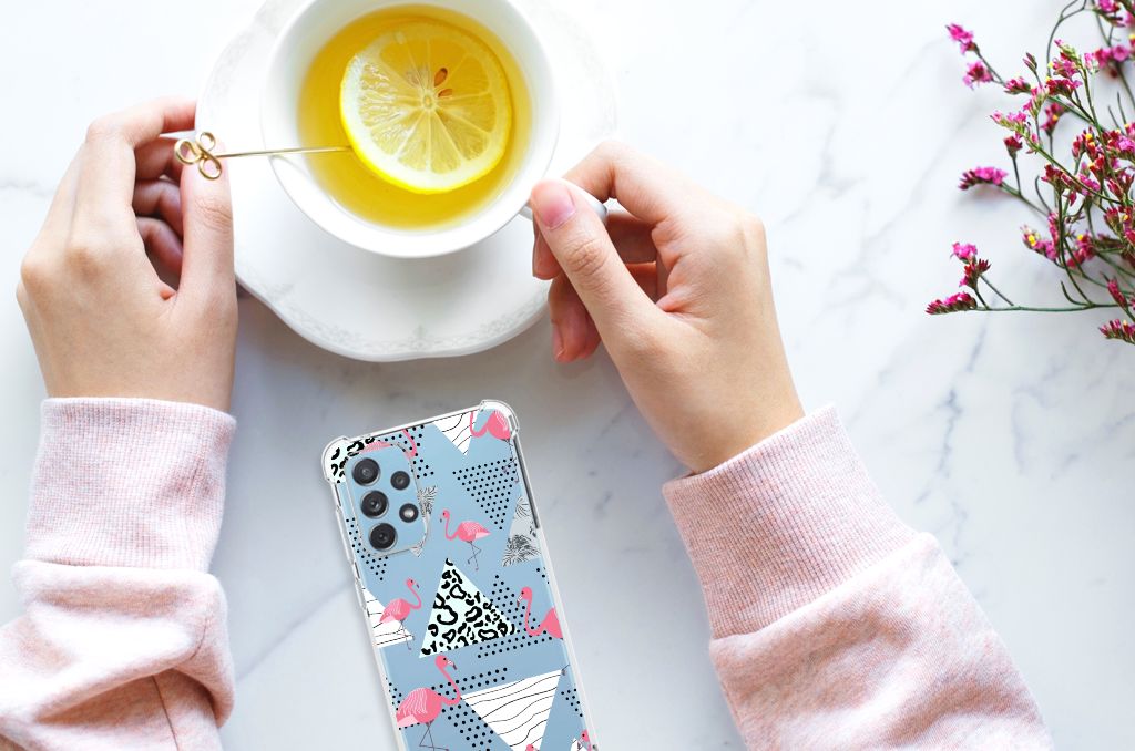 Ben je op zoek naar een uniek telefoonhoesje voor je Samsung Galaxy A73? Dan ben je bij B2C Telecom aan het juiste adres! Speciaal voor jou hebben we dit prachtige Flamingo Triangle design in onze collectie hoesjes opgenomen. Het design wordt bedrukt op een Case Anti-shock en is gemaakt van flexibel rubber. Het hoesje is perfect voor de actieve smartphonegebruiker door de opstaande randen/hoeken. Denk aan mensen die veel sporten, reizen of wandelen en net iets meer zekerheid willen als het op hun geliefde telefoon aankomt. Het design wordt alleen aan de bovenkant van het hoesje bedrukt en de randen blijven transparant. Aan de zijkanten zijn uitsparingen gemaakt waardoor je met gemak alle knoppen en poorten kunt bedienen. Wij adviseren om dit hoesje in combinatie met een screenprotector te gebruiken voor een langere levensduur van je telefoon. Wil je dit hoesje nog iets extra's geven? Voeg dan gratis je naam of een quote toe! Is dit design hoesje toch niet helemaal wat je zocht? Ontwerp dan zelf een hoesje in ons ontwerpprogramma.