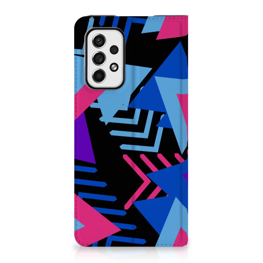 Dit fraaie hoesje met het design Funky Triangle is alles behalve eenvoudig en sober. Dat komt goed uit, want je hebt natuurlijk ook geen doorsnee telefoon gekocht. Mocht je dat wel hebben gedaan, dan wordt hij meteen speciaal als je een Samsung Galaxy A73 Stand Case koopt voor een spotprijsje. Een ding is zeker: opvallen ga je beslist met dit hoesje met paarse, roze en blauwe driehoeken. Jij zult in je element zijn met dit design hoesje met paarse, roze en blauwe driehoeken, omdat het er schitterend uitziet en jouw telefoon perfect beschermt. Het smartphonehoesje beschermt jouw telefoon aan alle zijden en beschikt over 1 opbergvakje en een speciale standaard. Het hoesje wordt afgesloten met een magneet aan de binnenzijde. De houder aan de binnenzijde is van TPU. Alle zijden van de stand case worden bedrukt. De paarse, roze en blauwe driehoeken maken de case helemaal af.