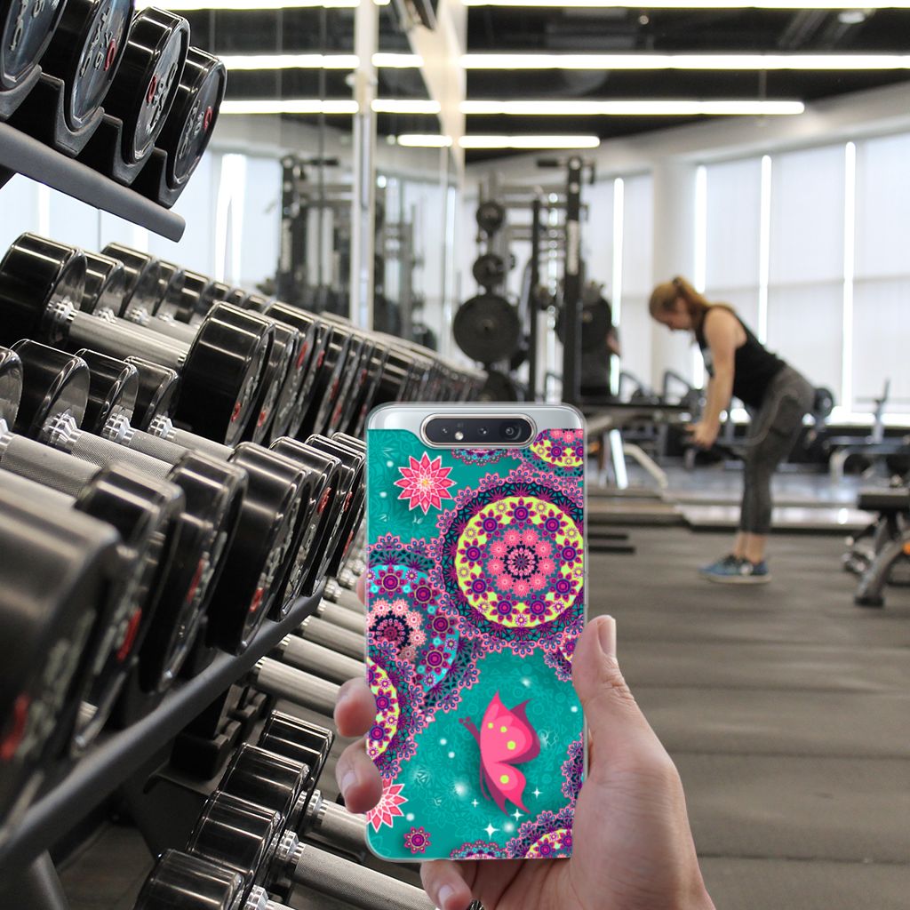 Deze opvallende Samsung Galaxy A80 Hoesje maken met Cirkels en Vlinders is een ware eyecatcher. De meeste vlinders hebben een onopvallende vleugelkleur en dat kun je van de soort op dit hoesje ook zeker wel zeggen. Wij kunnen deze opvallende vlinders en cirkels op een zeer handige tpu case zetten. Deze hoesjes zijn gewild omwille hun flexibiliteit. Met onze geavanceerde printer zetten we de print van opvallende vlinders en cirkels op de achterkant van het hoesje. De case met vlinders en cirkels blijft aan de zijkanten doorzichtig, zodat je maximaal het design van je smartphone behoudt. Verder is je telefoon natuurlijk goed beschermd met deze tpu case met print van blauwe vlinders. De bovenkant wordt bedrukt, de zijkanten niet. Met een screenprotector bescherm je ook het scherm maximaal.