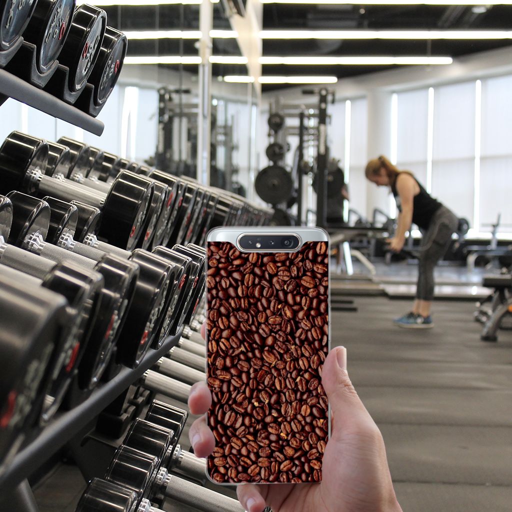 Als je de lekkerste koffie wilt dan kun je beste koffiebonen kopen. Koffie is namelijk het verst wanneer je de bonen zelf maalt. En wie houdt nou niet van de geur van vers gemaalde koffie? Daarom hebben wij de mooiste Koffiebonen op een smartphone hoesje gezet. Ben je barista, dan is dit het perfecte hoesje voor jouw werktelefoon. De koffiebonen staan op een tpu case. Dit is een zeer flexibel hoesje, dat altijd en overal in je broekzak past. Alleen de bovenkant van dit hoesje wordt door ons bedrukt, op zeer duurzame manier. Mensen die houden van een stevige espresso, kiezen voor dit degelijke design hoesje met bonen. Er staan geen bonen op de zijkanten van een Samsung Galaxy A80 Siliconen Case. Wel kun je zelf een eigen tekst toevoegen aan het design. Hoe mooi is dat?