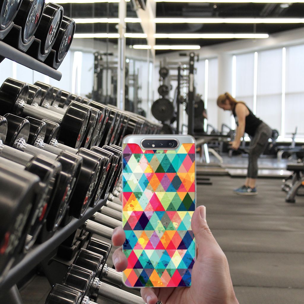 Van dit geruite design hoesje moet je een beetje houden. Maar als je het eenmaal in bezit hebt, ben je waarschijnlijk binnen no time verkocht. Het design heeft ruitjes in alle kleuren van de regenboog en door de grijze achtergrond kan het hoesje enigszins druk overkomen. Maar tegelijkertijd is dit de kracht van het hoesje. Met dit design hoesje Geruit zal je namelijk heel erg opvallen. Dit is voor veel vooral jonge smartphone gebruikers een belangrijk voordeel. Deze geruite print staat op een Samsung Galaxy A80 TPU bumper. Dit zeer flexibele smartphone hoesje heeft alle nodige uitsparingen en past altijd in je broekzak. De case is aan de bovenkant bedrukt, de randen blijven transparant.