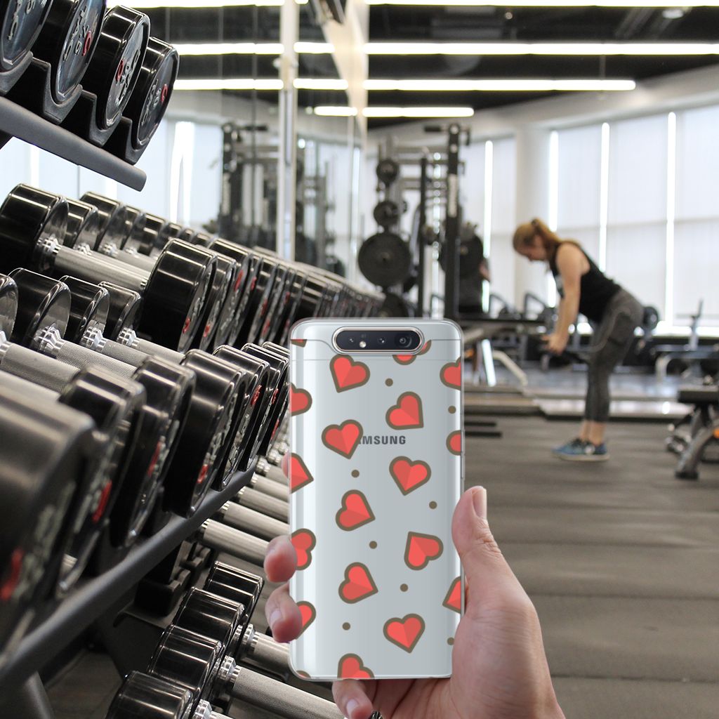 Met deze Samsung Galaxy A80 TPU bumper met hartjes op een grijs met witte achtergrond maak jij een goede beurt als je dit cadeau geeft aan je vriend of vriendin. Bekroon je liefde voor elkaar met deze hele mooie tpu case, die jouw telefoon met name aan de achterkant en zijkanten goed beschermt. Dit is echt een prachtige manier om je telefoon te beschermen. Het tpu hoesje met design met Hearts is ook nog eens zeer praktisch, mede door het buigzame materiaal en de uitsparingen. Als je telefoon met het TPU hoesje uit je hand valt, stuitert het als het ware meteen weer terug in je hand en zal het scherm in tact blijven. De case heeft namelijk opstaande randen aan de voorkant. Alleen de bovenkant van de case wordt bedrukt met hartjes, de zijkanten zijn doorzichtig. Voor een habbekrats is dit hoesje met hartjes op een grijs met witte achtergrond te bestellen.