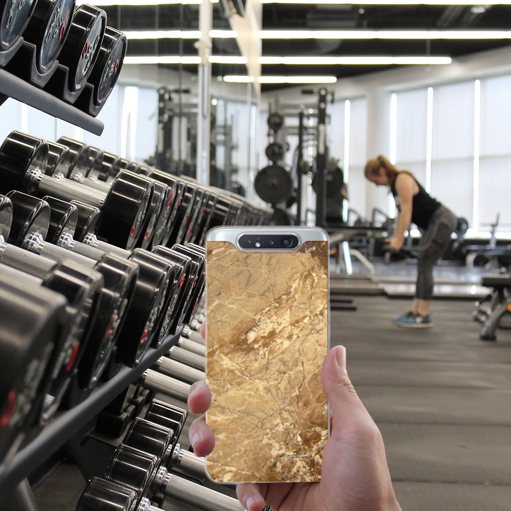 Dit design hoesje met Marmer in lichtbruine kleur is voor de artistiekelingen onder ons. De Grieken en Romeinen wisten het marmer al te waarderen door het in de bouw toe te passen. Naast het witte marmer zijn de diverse soorten marmer in een gevarieerde kleurensamenstelling te krijgen. We hebben verschillende mooie kleuren op design hoesjes gezet, zoals in dit geval het lichtbruine marmer. Dit is een Samsung Galaxy A80 TPU Siliconen Hoesje met marmer in lichtbruine kleur. Het marmer wordt bedrukt op de voorkant van een tpu case, die beschikt over opstaande randen aan de voorkant en heel goed combineert met een screenprotector van glas of van folie. Door de rijkdom aan kleuren en varianties in afwerking kunnen ontwerpers met marmer schitterende architectonische projecten realiseren. Wij hebben hetzelfde gedaan en onze ontwerper veel vrijheid geboden. Het resultaat zie je terug in deze tpu case met lichtbruin marmer, die jouw smartphone goed beschermt. De zijkanten van de case worden niet bedrukt met het lichtbruine marmer.
