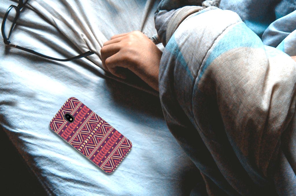 De Azteken leefden tussen 1200 en 1521 in het huidige Mexico. De mooie Aztec-patronen waar zij bekend om stonden, zien we nu nog op kleding, stoffen en tassen. Wie had toen kunnen bedenken dat we diezelfde prints honderden jaren later zelfs op een telefoonhoesje zouden vinden? Dit kleurrijke Aztec Purple-hoesje is perfect voor iedereen die een stukje geschiedenis bij zich wil dragen maar ook gewoon een mooi patroon op zijn hoesje wil. Dit vrolijke, kleurrijke ontwerp staat op een TPU bumper voor de Samsung Galaxy J3 2017. TPU is flexibel en onbreekbaar. Zo is je telefoon aan de achterkant en de randen heel goed beschermd. De case is aan de bovenkant bedrukt, de randen blijven transparant.