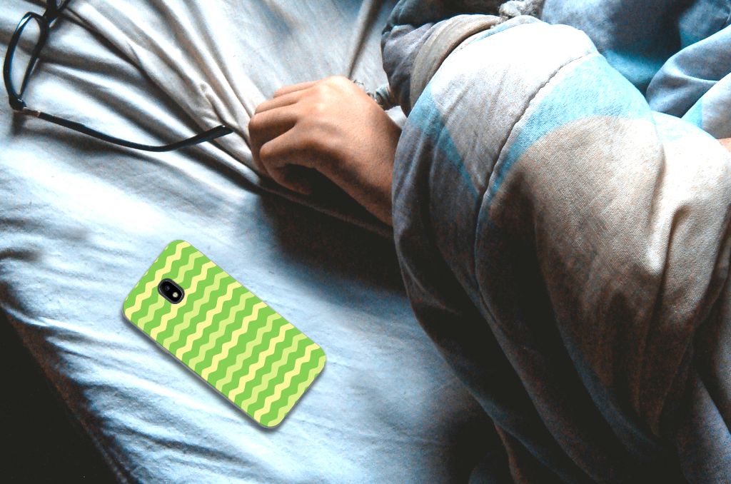 Dit groene design hoesje met groene golven is speciaal ontworpen voor jouw telefoon. We hebben een vleugje geel toegevoegd, zodat er sprake is van variatie. Dit Waves Green hoesje ziet er flitsend uit. Dat kan ook niet anders, als je weet dat we veel energie steken in het bedenken van originele designs. Een heel strak Samsung Galaxy J3 2017 TPU bumper, met zeer veel opties. Past dit groene design hoesje met golven goed bij jou? Bestel het dan vandaag nog, tegen zeer lage kosten. Het design staat op een TPU case. Dit hoesje wordt alleen aan de bovenkant bedrukt en is zeer flexibel. De randen van het hoesje met groene golven blijven transparant en worden niet bedrukt. Met dit hoesje past jouw telefoon altijd in je broekzak.