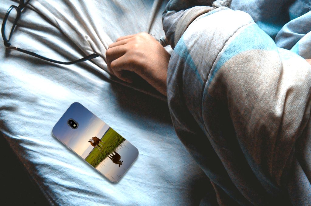 Het levert een idyllisch plaatje op, dit hoesje met een koe en ondergaande zon op de achtergrond. Door een koe buiten te laten lopen en grazen, hebben ze minder kans om ziek te worden. De Koe graast het liefst met soortgenoten, al zijn deze een stukje van de koe op de case verwijderd. Dit levert ook een mooi plaatje op, zoals je kunt zien op dit design hoesje. Dit tpu hoesje met koeien ziet er flexibel uit en is voorzien van alle uitsparingen. Een Samsung Galaxy J3 2017 TPU Hoesje met koeien beschermt jouw smartphone vooral aan de achterkant en zijkanten. De zijkanten blijven transparant, de rest van het hoesje is bedrukt. Koeien herkauwen het liefst liggend, behalve wanneer het regent. Zo goed als grazen voelt voor koeien, zo duurzaam zal jouw smartphone blijven met dit design hoesje. Het TPU is schokabsorberend en niet te breken. De TPU case past altijd in je broekzak.
