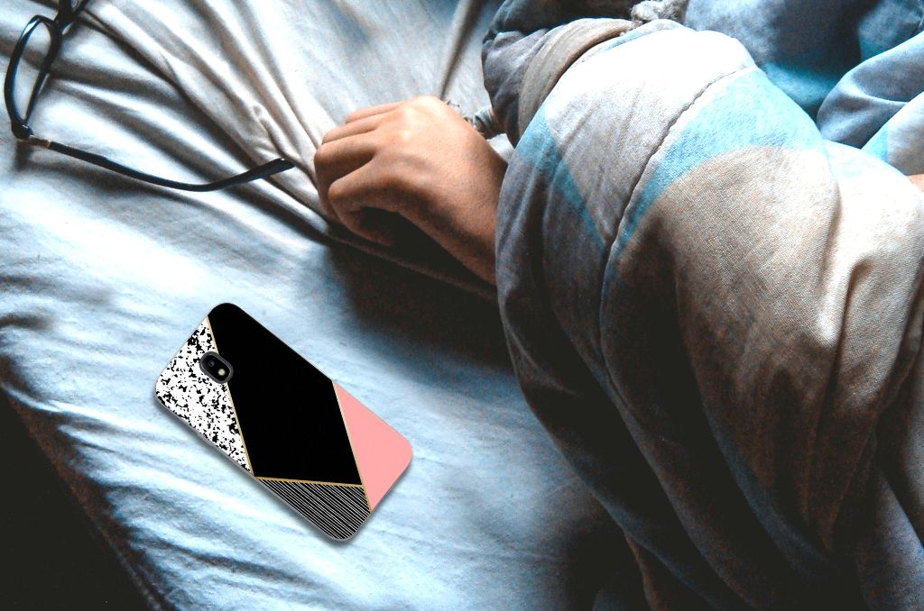 - Met een tpu-siliconen hoesje met roze, zwarte en witte vlakken blijft jouw telefoon in tact.