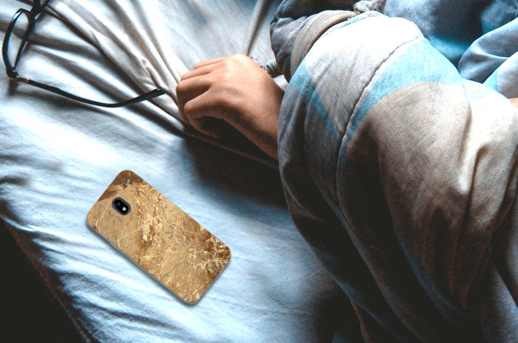 Dit design hoesje met Marmer in lichtbruine kleur is voor de artistiekelingen onder ons. De Grieken en Romeinen wisten het marmer al te waarderen door het in de bouw toe te passen. Naast het witte marmer zijn de diverse soorten marmer in een gevarieerde kleurensamenstelling te krijgen. We hebben verschillende mooie kleuren op design hoesjes gezet, zoals in dit geval het lichtbruine marmer. Dit is een Samsung Galaxy J3 2017 TPU Siliconen Hoesje met marmer in lichtbruine kleur. Het marmer wordt bedrukt op de voorkant van een tpu case, die beschikt over opstaande randen aan de voorkant en heel goed combineert met een screenprotector van glas of van folie. Door de rijkdom aan kleuren en varianties in afwerking kunnen ontwerpers met marmer schitterende architectonische projecten realiseren. Wij hebben hetzelfde gedaan en onze ontwerper veel vrijheid geboden. Het resultaat zie je terug in deze tpu case met lichtbruin marmer, die jouw smartphone goed beschermt. De zijkanten van de case worden niet bedrukt met het lichtbruine marmer.