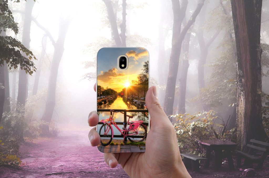 Amsterdam is meer dan ooit een toeristische trekpleister. Een bezoek aan de hoofdstad is niet compleet als je niet aanlegt bij de Amsterdamse Grachten. Ze zijn een symbool van de stad en hebben een enorme culturele en historische waarde. Daarom kunnen ze natuurlijk niet ontbreken in onze collectie design hoesjes. Dit schitterende design hoesje met Amsterdamse grachten tref je enkel en alleen aan bij B2C Telecom. De ondergaande zon en de fleurige en fraaie bloempakketten zorgen voor een prachtig totaalplaatje. Amsterdam is wereldberoemd om haar prachtige grachten uit de zeventiende eeuw. Dit smartphone hoesje is hier een eerbetoon aan. Het design staat op een TPU case. Dit Samsung Galaxy J5 2017 Siliconen Back Cover wordt alleen aan de bovenkant bedrukt en is zeer flexibel. De randen van het hoesje blijven transparant.