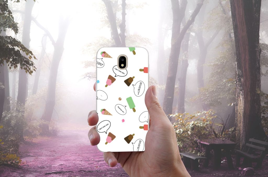 Van deze vrolijke Samsung Galaxy J5 2017 Siliconen Case met daarop verschillende soorten ijsjes met tekstwolkjes krijg je sowieso een vrij en zomers gevoel. De zomer komt naar je toe met deze print van ijsjes met tekstwolkjes. Ben je op het strand, dan ontbreekt een lekker ijsje natuurlijk niet. Net zoals je je smartphone bij de hand hebt, met daaromheen een design hoesje met bijzondere ijsjes en tekstwolkjes. Jouw telefoon kan dan de bescherming in de vorm van een tpu hoesje met ijsjes zeer goed gebruiken. De bovenkant van dit hoesje wordt bedrukt met ijsjes en tekstwolkjes, de zijkanten blijven doorzichtig. De case is gemaakt van schokabsorberend materiaal en past altijd in je broekzak. Onder alle weersomstandigheden zal deze TPU case perfect functioneren, ook in de zomer met een ijsje in je hand.