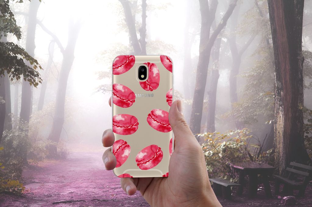 Dit tpu hoesje met Pink Macarons is een zeer opvallende bescherming voor jouw smartphone. Macarons zijn Franse koekjes: kleine, rond en luchtig. Ze worden in veel verschillende smaken gemaakt, herkenbaar aan de verschillende kleuren zoals chocolade (donkerbruin), mokka (middenbruin), kersen (rood), pistache (groen), aardbei (roze), framboos (karmijn). Deze kleuren kun je niet allemaal zien op dit fraaie design hoesje met roze macarons. Heb je altijd al een Samsung Galaxy J5 2017 Siliconen Case willen hebben met roze macarons? Grijp dan nu je kans. Deze case heeft zeer veel goede eigenschappen, zoals elastisch vermogen, flexibiliteit en schokbestendigheid. Dit design hoesje met roze macarons wordt aan de bovenkant bedrukt, de zijkanten blijven doorzichtig. De case heeft opstaande randen aan de voorzijde en beschermt samen met een screenprotector jouw telefoon perfect. De case heeft ook een handige standaard.