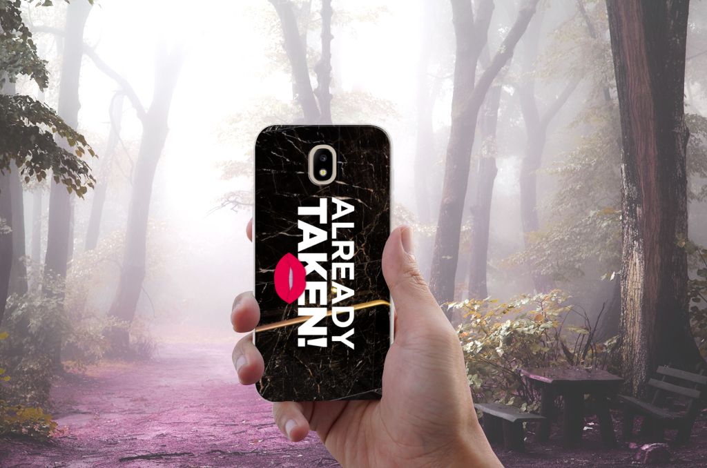 Met deze Samsung Galaxy J5 2017 Siliconen hoesje met naam met Already Taken Black tekst maak je duidelijk dat jouw smartphone een kostbaar bezit is, waar je zeer lang over wilt beschikken. Je telefoon neem je waarschijnlijk vaak ter hand, dus dan zal de boodschap als je over dit hoesje beschikt zeker weten overkomen. De TPU case wordt alleen aan de bovenkant bedrukt en is zeer flexibel. De randen van het hoesje blijven transparant. Wil je een eigen tekst op je hoesje zetten? Dit kan ook, met onze Phone Case Designer. Deze unieke ontwerpmodule is ook geschikt om het design uit te breiden met foto’s, effecten en patronen.
