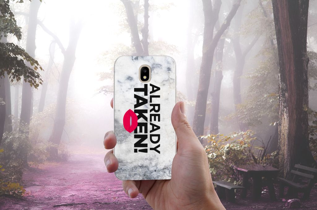 Stel dat je opdringende vrouwen of mannen van je af wil schudden op het moment dat je aan het feesten bent, omdat je al een partner hebt. Dan kun je dat met dit hoesje uitstekend duidelijk maken. Je Samsung Galaxy J5 2017 neem je waarschijnlijk vaak ter hand, dus dan zal de boodschap als je over dit hoesje beschikt zeker weten overkomen. Ook in het openbaar vervoer zal dit hoesje ervoor zorgen dat je minder snel versierd wordt door het andere geslacht. Als je vrijgezel bent en op zoek naar gezelschap, dan kun je beter kiezen voor een ander hoesje uit ons ruime en gevarieerde assortiment. Het design Already Taken White staat op een Siliconen hoesje met naam. Dit hoesje wordt alleen aan de bovenkant bedrukt en is zeer flexibel. De randen van het hoesje blijven transparant.
