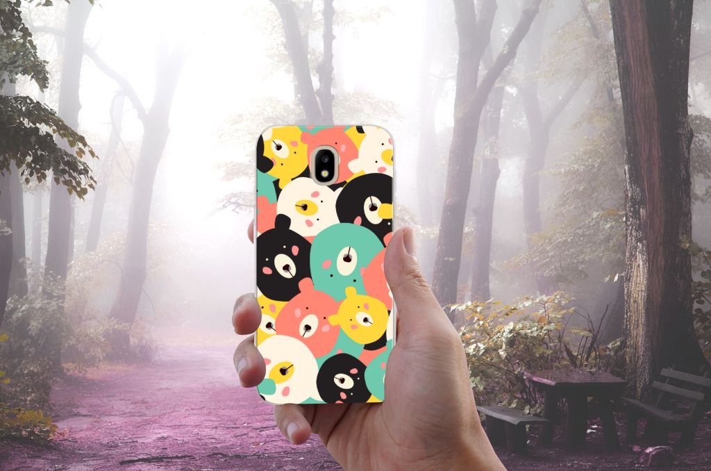 Op dit hoesje vind je een bereschattig ontwerp! Vergeef ons de woordgrap, maar hoe moeten we dit lieve ontwerp anders omschrijven? Op dit knuffelige ontwerp zie je leuke, getekende beertjes in vrolijke kleuren als geel, blauw en roze. Dankzij de contrasterende witte en zwarte beertjes vallen de felle kleurtjes nog meer op. Al met al is dit Telefoonhoesje met Naam voor de Samsung Galaxy J5 2017 een perfect hoesje voor de knuffelberen onder ons. TPU is flexibel en onbreekbaar. Zo is je telefoon aan de achterkant en de randen heel goed beschermd. De case met het Bears-design is aan de bovenkant bedrukt, de randen blijven transparant. Het TPU-hoesje is perfect te combineren met een screenprotector, zo zijn je telefoon en je beeldscherm perfect beschermd.