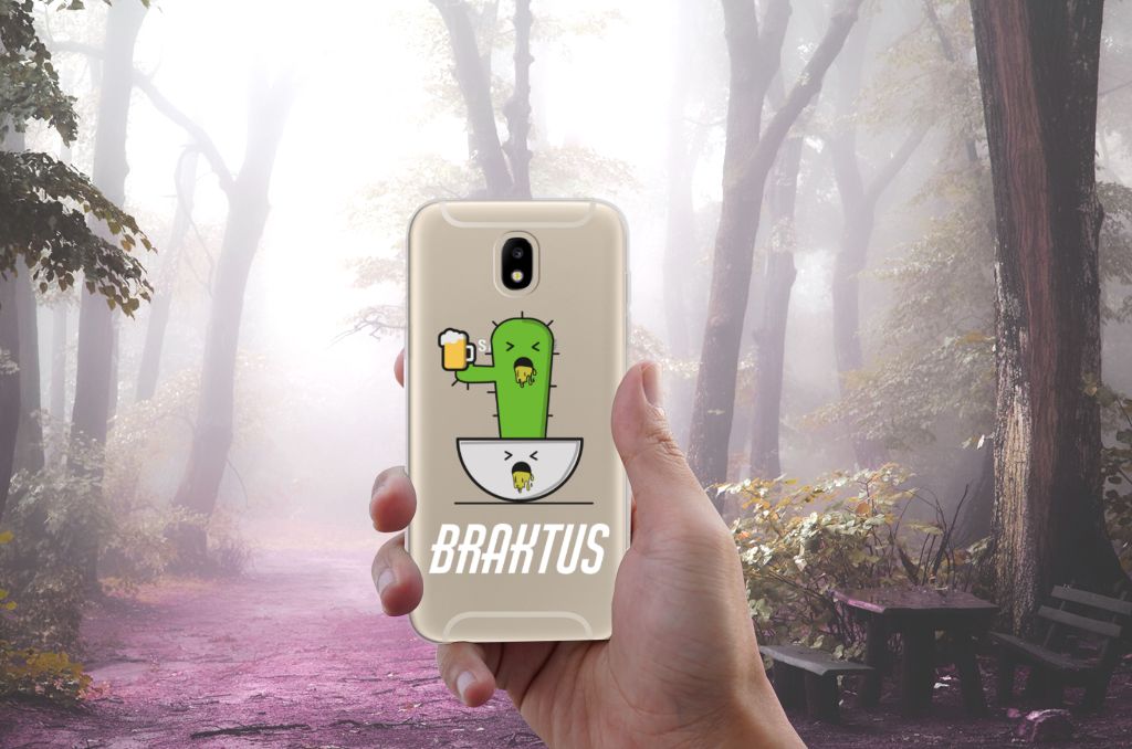 Voor de stappers onder ons hebben we dit hele grappige hoesje ontworpen. Deze Braktus case geeft perfect het gevoel weer als jij in de ochtend wakker wordt na een weekendje carnaval vieren: duf en waardeloos. Hopelijk was dit het wel waard en heb je een gezellige tijd gehad. Als aandenken zou je deze Telefoonhoesje met Naam met cactus print kunnen bestellen. Deze design case beschermt jouw Samsung Galaxy J5 2017 vooral aan de achterkant en zijkanten, het scherm blijft deels onbeschermd. Verder heeft het telefoonhoesje opstaande randen, zodat het toestel bij een val de grond niet direct raakt. Een handig en flexibel hoesje, dat altijd in je broekzak past. Bescherming heb je met carnaval natuurlijk wel nodig, want tijdens het hossen kan de telefoon zomaar uit je outfit vallen. Bestel daarom deze TPU case, gemaakt van schokabsorberend materiaal. Alleen de bovenkant van de case wordt bedrukt en de randen blijven transparant.