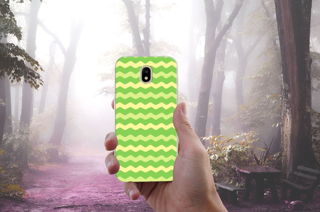 Dit groene design hoesje met groene golven is speciaal ontworpen voor jouw telefoon. We hebben een vleugje geel toegevoegd, zodat er sprake is van variatie. Dit Waves Green hoesje ziet er flitsend uit. Dat kan ook niet anders, als je weet dat we veel energie steken in het bedenken van originele designs. Een heel strak Samsung Galaxy J5 2017 TPU bumper, met zeer veel opties. Past dit groene design hoesje met golven goed bij jou? Bestel het dan vandaag nog, tegen zeer lage kosten. Het design staat op een TPU case. Dit hoesje wordt alleen aan de bovenkant bedrukt en is zeer flexibel. De randen van het hoesje met groene golven blijven transparant en worden niet bedrukt. Met dit hoesje past jouw telefoon altijd in je broekzak.