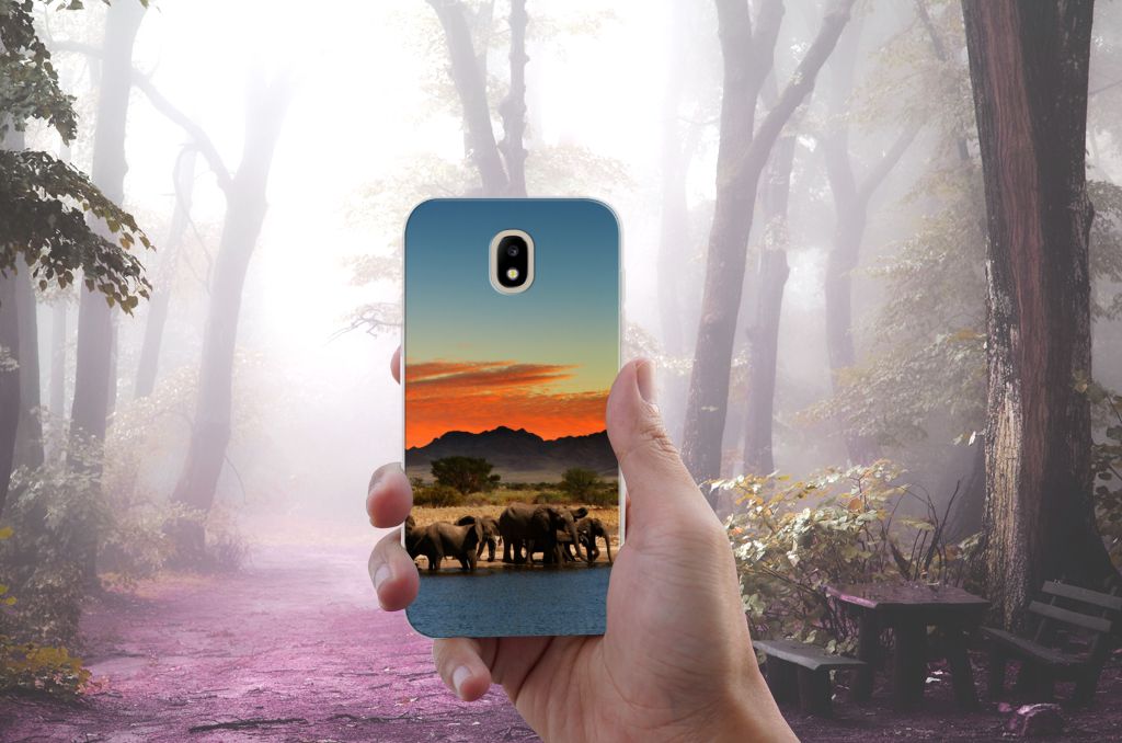 Dit hoesje is zo sterk als een olifant. Dat is goed nieuws, want jouw telefoon heeft een zeer goede bescherming nodig. Dat krijg je met dit design hoesje met print van Olifanten. De Afrikaanse olifant, het allergrootste landdier ter wereld, heeft waarschijnlijk het meest te lijden gehad van stroperij om het ivoor. Deze dieren verdienen dus een goede bescherming, net als jouw smartphone. Met een Samsung Galaxy J5 2017 TPU Hoesje met olifant erop krijg je dit zeker voor elkaar. De tpu case beschermt vooral de achterkant en zijkanten van je telefoon en is gemaakt van onbreekbaar materiaal. De sterke olifant komt zeer goed tot zijn recht op deze case, die zeer flexibel is. Alleen de bovenzijde van de case wordt bedrukt met olifanten, de zijkanten blijven transparant.