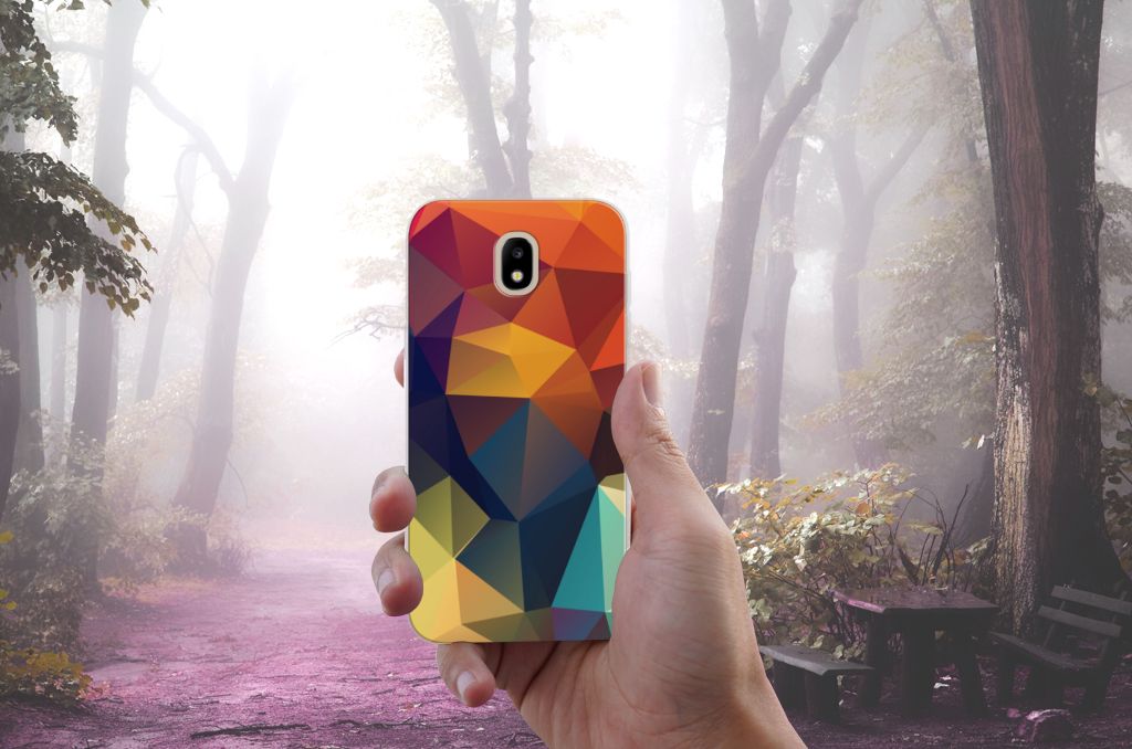 Veelkleurige driehoeken die samen eindeloze asymmetrische patronen lijken te vormen. Het is het abstracte schouwspel dat op dit fraaie hoesje voor je Samsung Galaxy J5 2017 direct de aandacht trekt noemen we voor het gemak trekt noemen we voor het gemak Polygon Color. De een ziet er een berglandschap in, de ander piramides. Wat zie jij erin? Zeker is in elk geval dat de aanblik van dit fascinerende ontwerp je niet snel gaat vervelen. Het kleurige spel van lijnen en vlakken blijft eindeloos boeien en geeft jouw TPU Hoesje een hippe en kunstzinnige uitstraling. De kracht die het lijnenspel uitstraalt, komt ook terug in het hoesje zelf. Dit hoesje wordt alleen aan de bovenkant bedrukt en is zeer flexibel. De randen van het hoesje blijven transparant. Wat wil je nog meer?