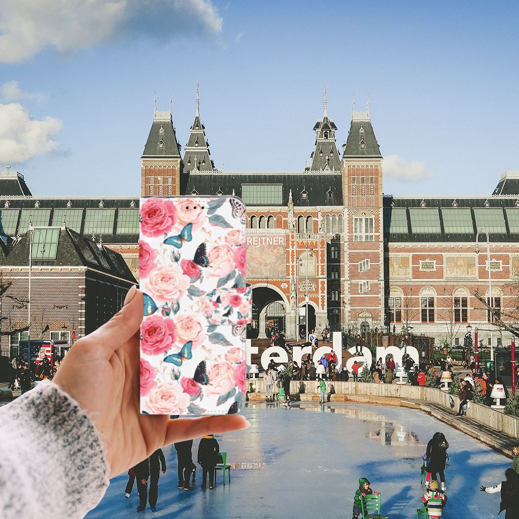 Samsung Galaxy J6 2018 Hoesje gemaakt van TPU en kunstleer Butterfly Roses