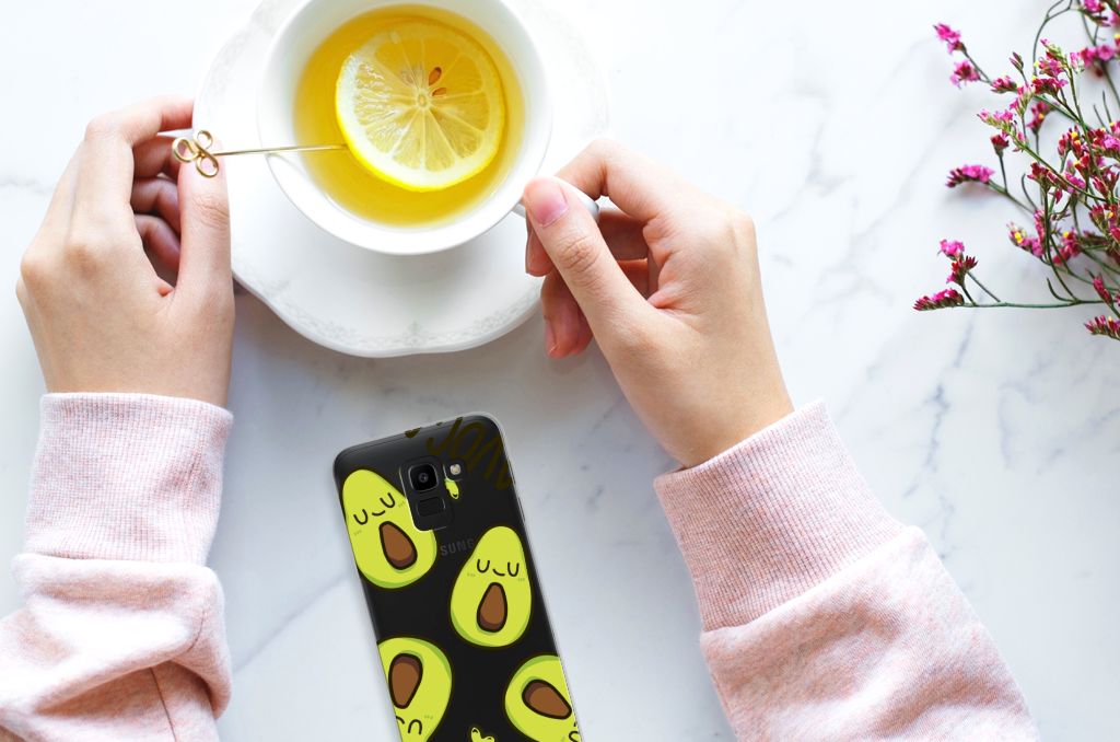 Avocado’s zijn niet alleen heel erg goed voor je, ze zijn ook super leuk op je telefoonhoesje. Dit unieke design vol schattige avocado’s zal jou en iedereen om je heen meteen opvrolijken. Nog een voordeel van dit design: deze avocado’s bederven nooit! Dit leuke Avocado Singing-ontwerp staat op een Telefoonhoesje met Naam voor de Samsung Galaxy J6 2018. Met deze vrolijke groene vruchten op je hoesje val jij zeker op. TPU is flexibel en onbreekbaar. Zo is je telefoon aan de achterkant en de randen heel goed beschermd. De case is aan de bovenkant bedrukt, de randen blijven transparant. Het TPU-hoesje is perfect te combineren met een screenprotector, zo zijn je telefoon en je beeldscherm perfect beschermd.