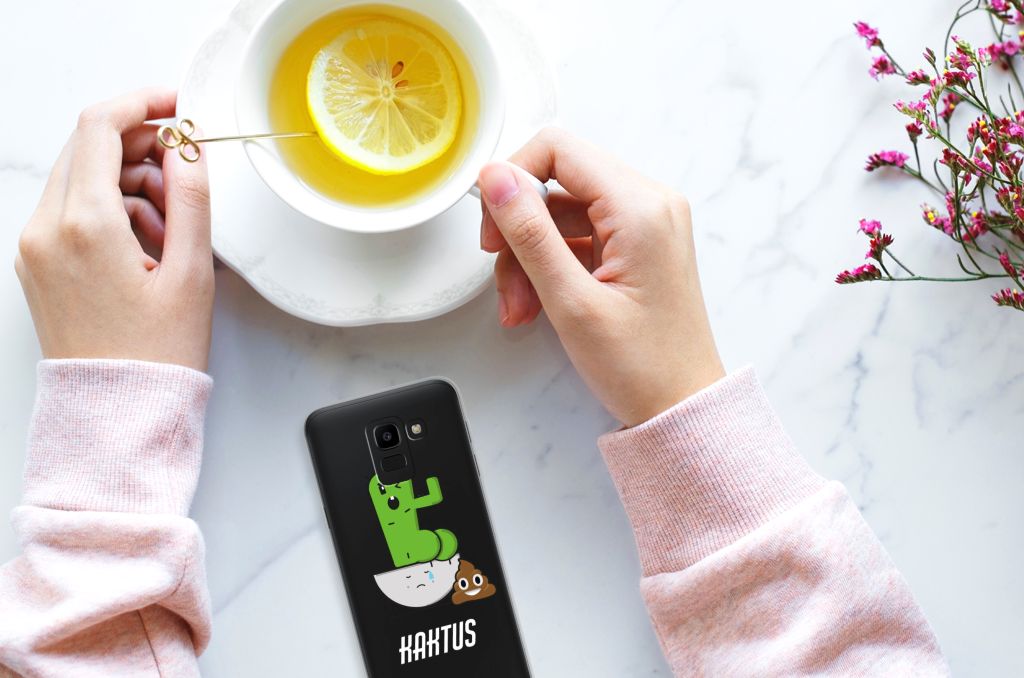 De cactus is leuk, hip en makkelijk te verzorgen. Maar wie denkt dat hij helemaal zonder aandacht kan, heeft het mis. Op dat moment komt hij in opstand, zoals op dit grappige design hoesje met cactus te zien is. Deze Telefoonhoesje met Naam met Cactus Poo design is van alle markten thuis. Het is een zeer veilig maar ook prachtig en praktisch hoesje. Dat bewijzen het flexibele en schokabsoberende materiaal en het lichte gewicht. De meeste cactussen komen uit Amerika. Daar groeien ze in hun natuurlijke omgeving, de woestijn en steppen. Maar ze groeien ook in tropische regenwouden. Dit geeft aan dat de cactus een plant is die zich makkelijk aanpast. Dat geldt dus helaas niet voor de cactus op dit tpu hoesje, maar jouw Samsung Galaxy J6 2018 is wel goed beschermd. Valt de telefoon op de grond, dan beschermen de opstaande randen van de case het touchscreen. Alleen de bovenkant van dit hoesje wordt bedrukt met de geinige kaktus. De zijkanten van de TPU case blijven transparant.