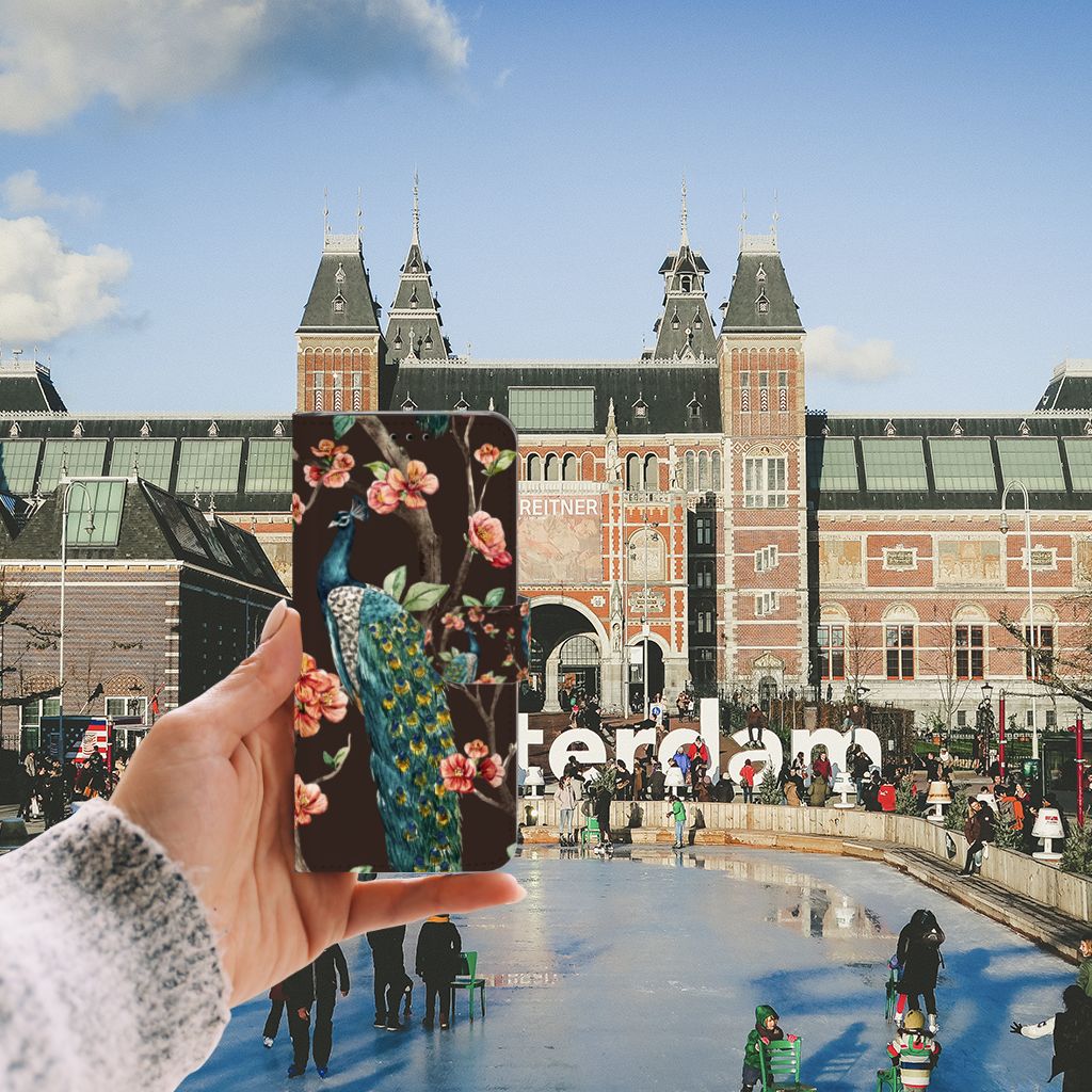 Samsung Galaxy J6 2018 Telefoonhoesje sluit met magnetisch lipje Pauw | Bloemen